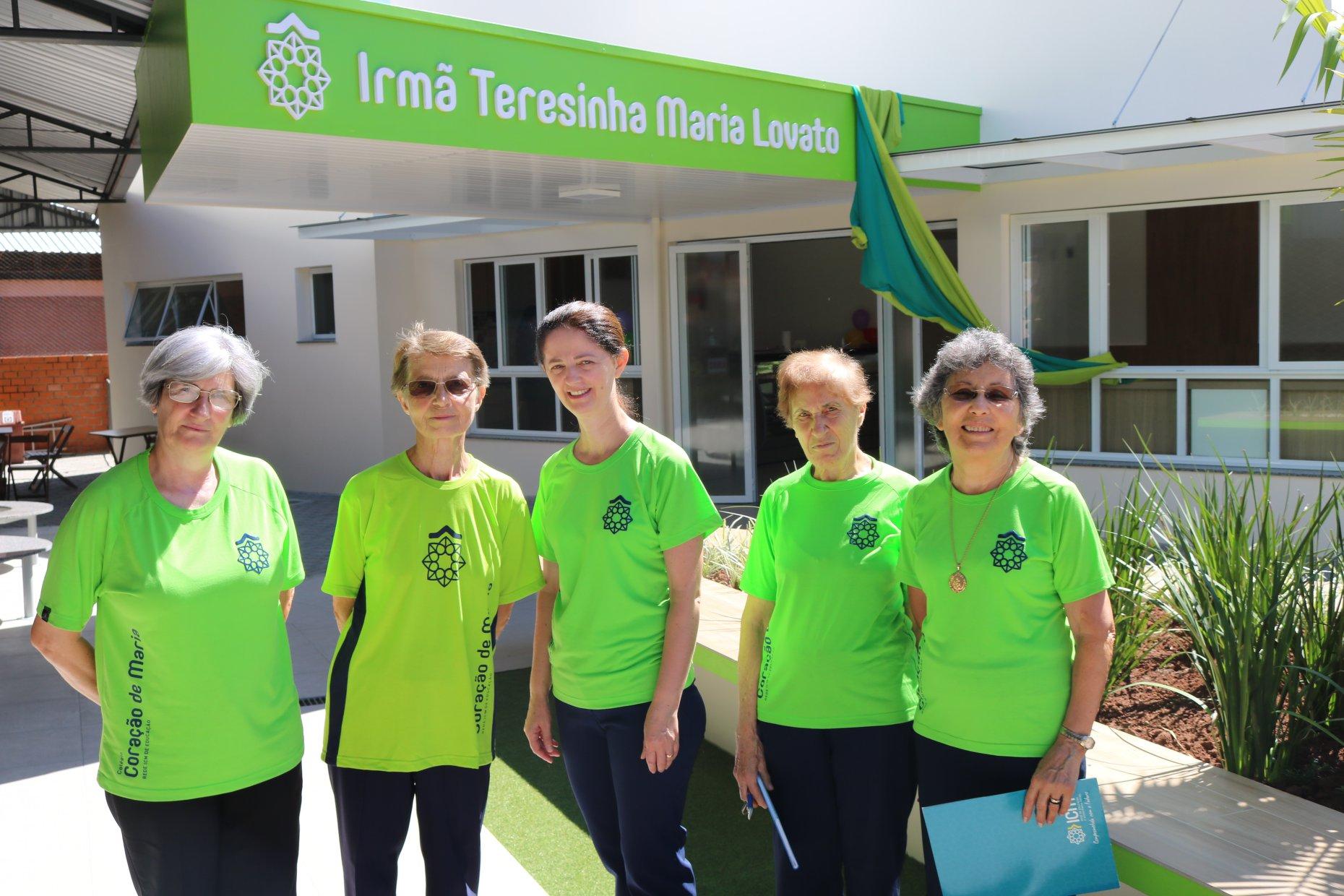 O novo ambiente foi batizado de “Cantina e Espaço de Convivência Irmã Teresinha Maria Lovato”, uma homenagem à religiosa nascida em 1946 e que entre os anos de 1994 e 2015, foi diretora da unidade de ensino. Irmã Teresinha faleceu em 2015.