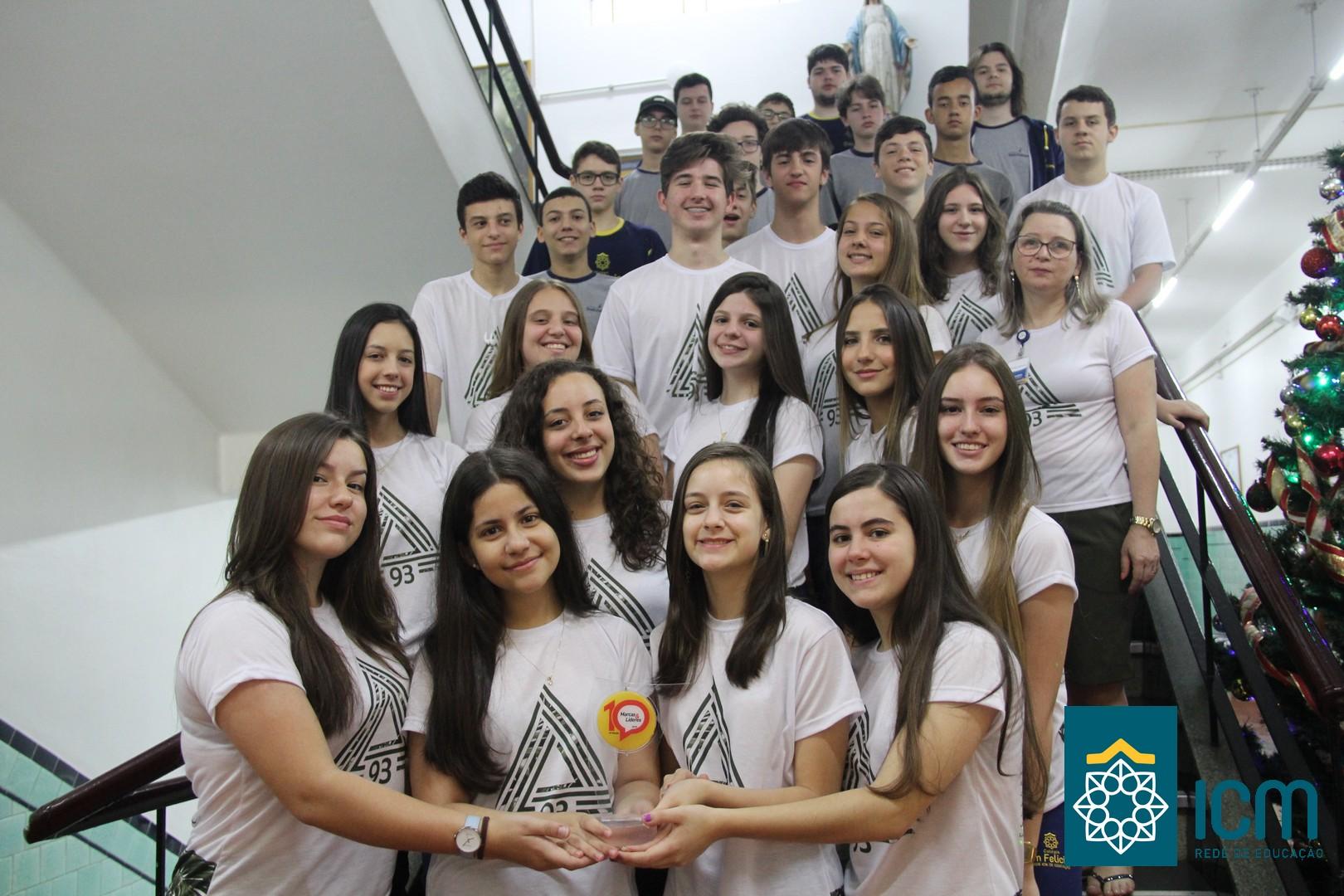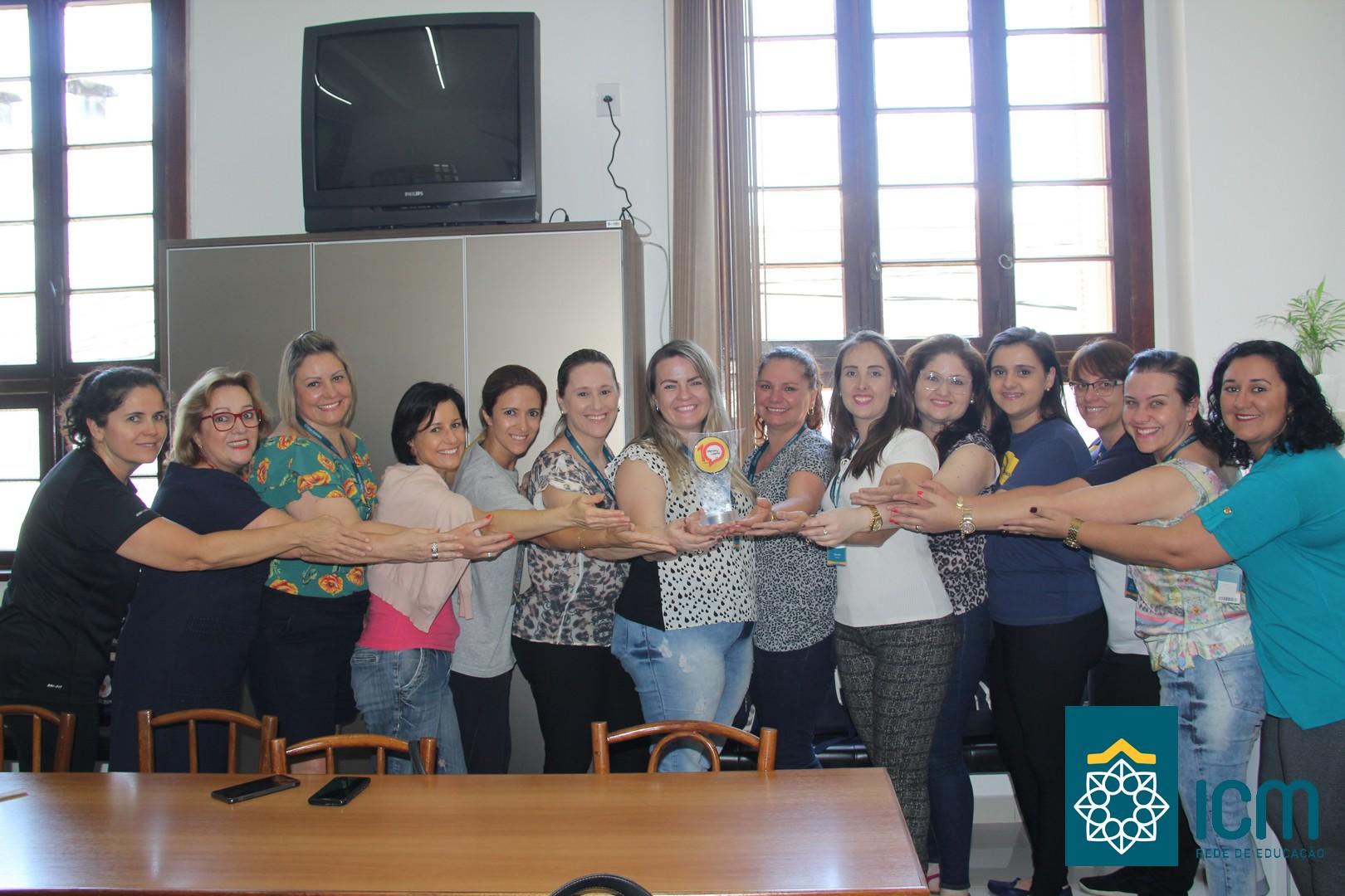 A comunidade educativa recebeu o troféu que marca o reconhecimento do prêmio.