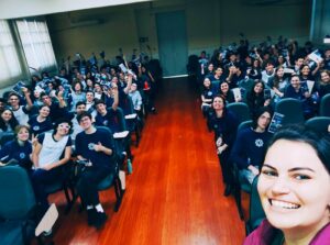 Os estudantes foram recepcionados no auditório com um momento cultural proporcionado pela docente de música da instituição, Taina Dullius. Após a acolhida, a orientadora Anice Nunes e psicóloga Solange Marostega apresentaram os eixos que serão abordados no programa em cada ciclo do Ensino Médio, reforçando a importância deste trabalho em parceria com as mais variadas instituições de ensino superior e de aperfeiçoamento, a fim de qualificar e orientar os jovens na sua caminhada de escolha profissional.
