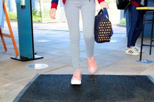 O Colégio conta com equipes responsáveis pelo fluxo de entrada e saída, com checklist de aferição da temperatura, conferência do uso correto de máscaras, higienização dos pés no tapete sanitizante e limpeza das mãos com álcool gel. Além disso, os corredores do Colégio e as salas estão com todas as sinalizações de distanciamento e segurança.