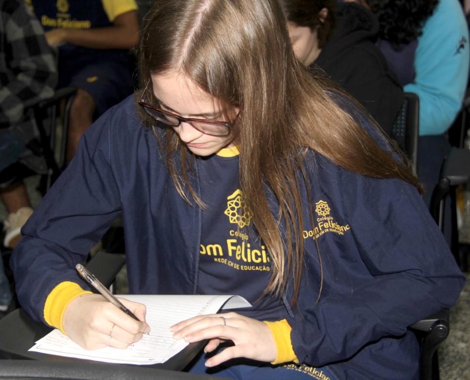 O Concurso de Redação terá mais uma etapa. Desta vez de produção textual com os alunos do 9º ano do Ensino Fundamental – Anos Finais. A prova – produção de texto narrativo – ocorre no dia 10 de outubro e também deve reunir 120 alunos no Colégio Dom Feliciano.