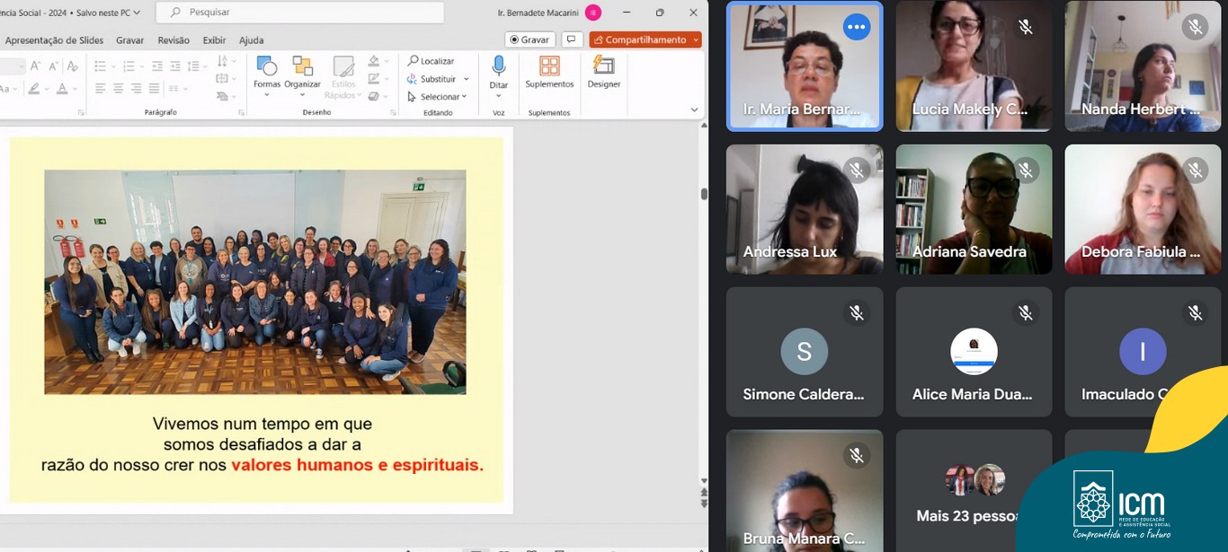 A sexta-feira, 15 de março, foi dia de capacitação para todos os educadores da Rede ICM de Assistência Social. Durante todo o dia, o encontro online reuniu mais de 70 pessoas e proporcionou uma formação adicional para a qualificação da missão de acolhimento, proteção básica e promoção da cidadania em todas as unidades socioassistenciais.