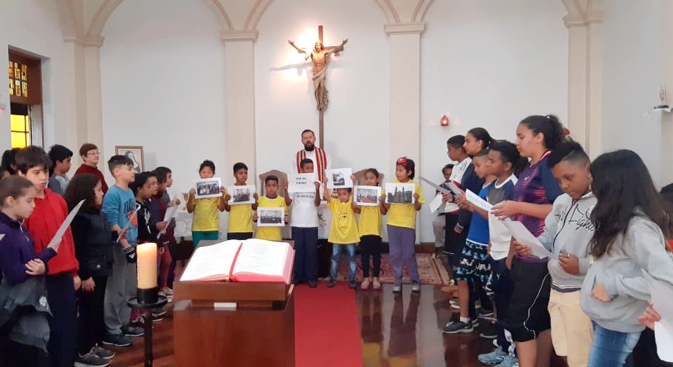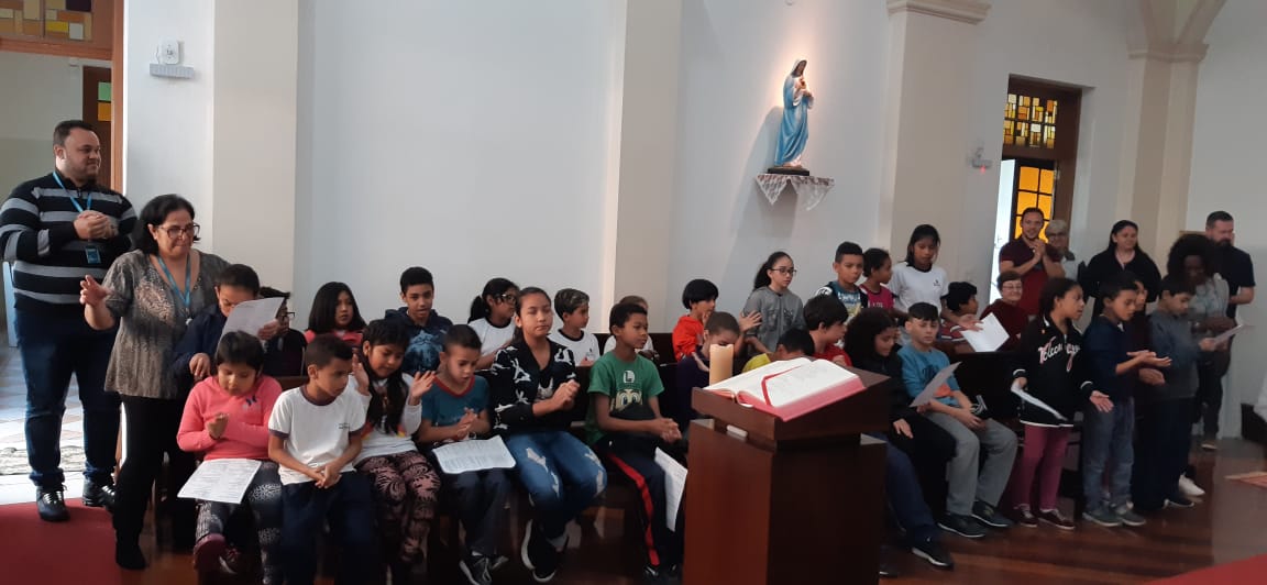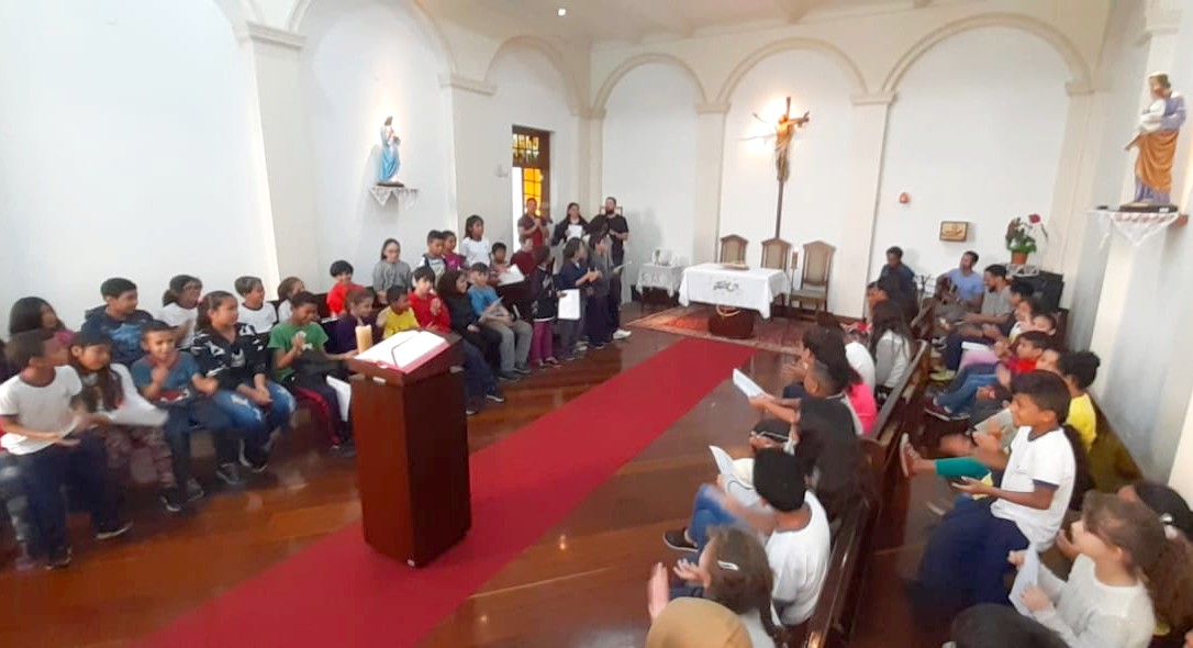 O mês Vocacional foi encerrado com Celebração da Missa, dia 29/08, na capela do Educandário, presidida pelo Pe. Marcelo Maróstica, pároco da Paróquia São José do Belém, com todos os educandos da Obra, ressaltando o tema “Vocações” como o despertar de todas as cores, todos os credos destacando que a vocação nunca é somente “minha”, mas é sempre “para e com os outros”. Na oração do Pai Nosso, o Padre nos convidou a dar-nos as mãos para rezar a oração que Jesus Cristo nos ensinou, mostrando-nos que no Projeto de Deus nada se faz sozinho, mas em comunidade. Tudo é construído coletivamente. Assim deveria ser na Igreja e na sociedade, colaborando para um mundo mais humano, fraterno e solidário.