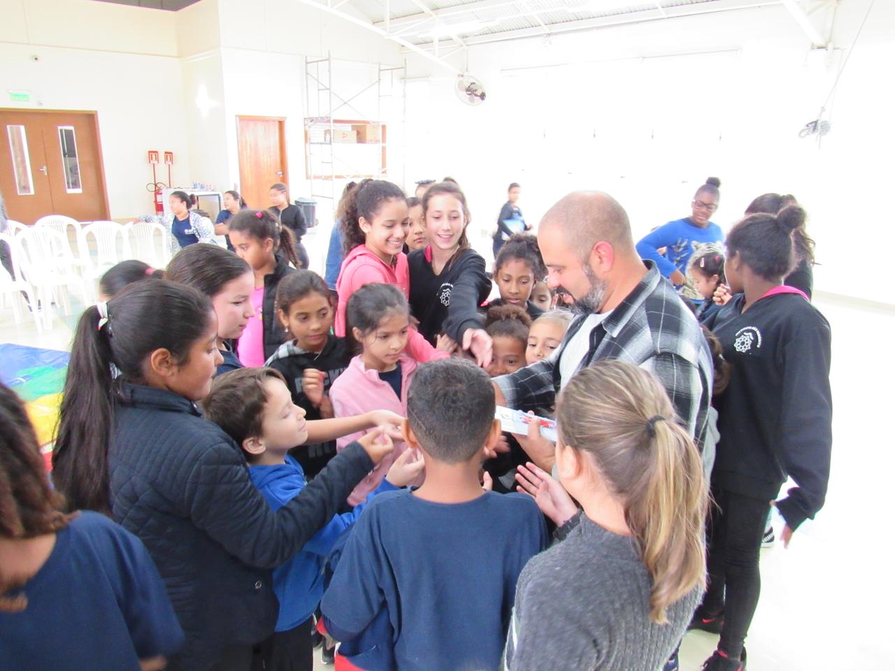 Já no bate-papo, Joso trouxe um pouco da Austrália para mais perto das crianças. Falou da motivação em escrever o livro e sobre a empolgante aventura que acontece no outro lado do mundo (mais informações abaixo). O autor ainda sorteou livros e autografou cartões para os educandos da unidade socioassistencial da Rede ICM. A alegria foi completa!