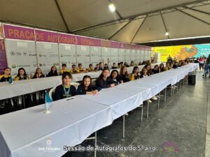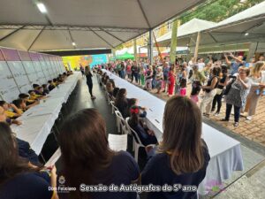 Já no sábado, 9 de novembro, os ilustres autores do Colégio Dom Feliciano (Gravataí/RS) também lançaram seu livro: “Fábulas de Sempre Escritas por Crianças de Agora”. Em duas sessões de autógrafos repletas de emoção e orgulho, familiares, amigos e visitantes celebraram com os estudantes, que compartilharam suas fábulas cheias de ensinamentos e criatividade. Foi uma tarde marcada pelo protagonismo e pela imaginação de nossos jovens autores.