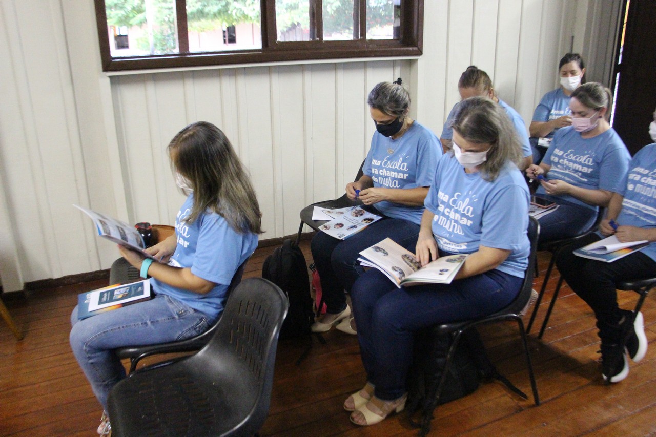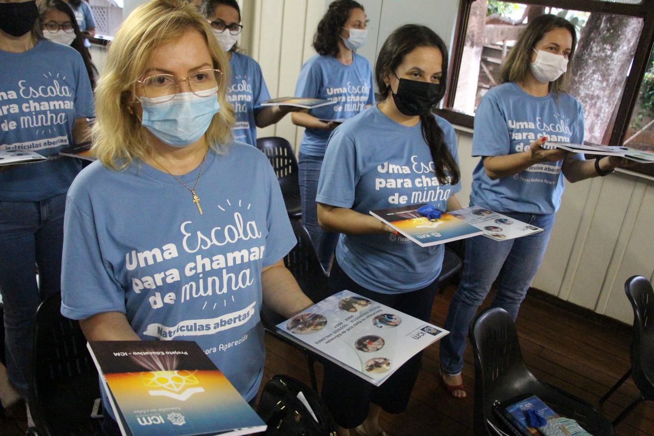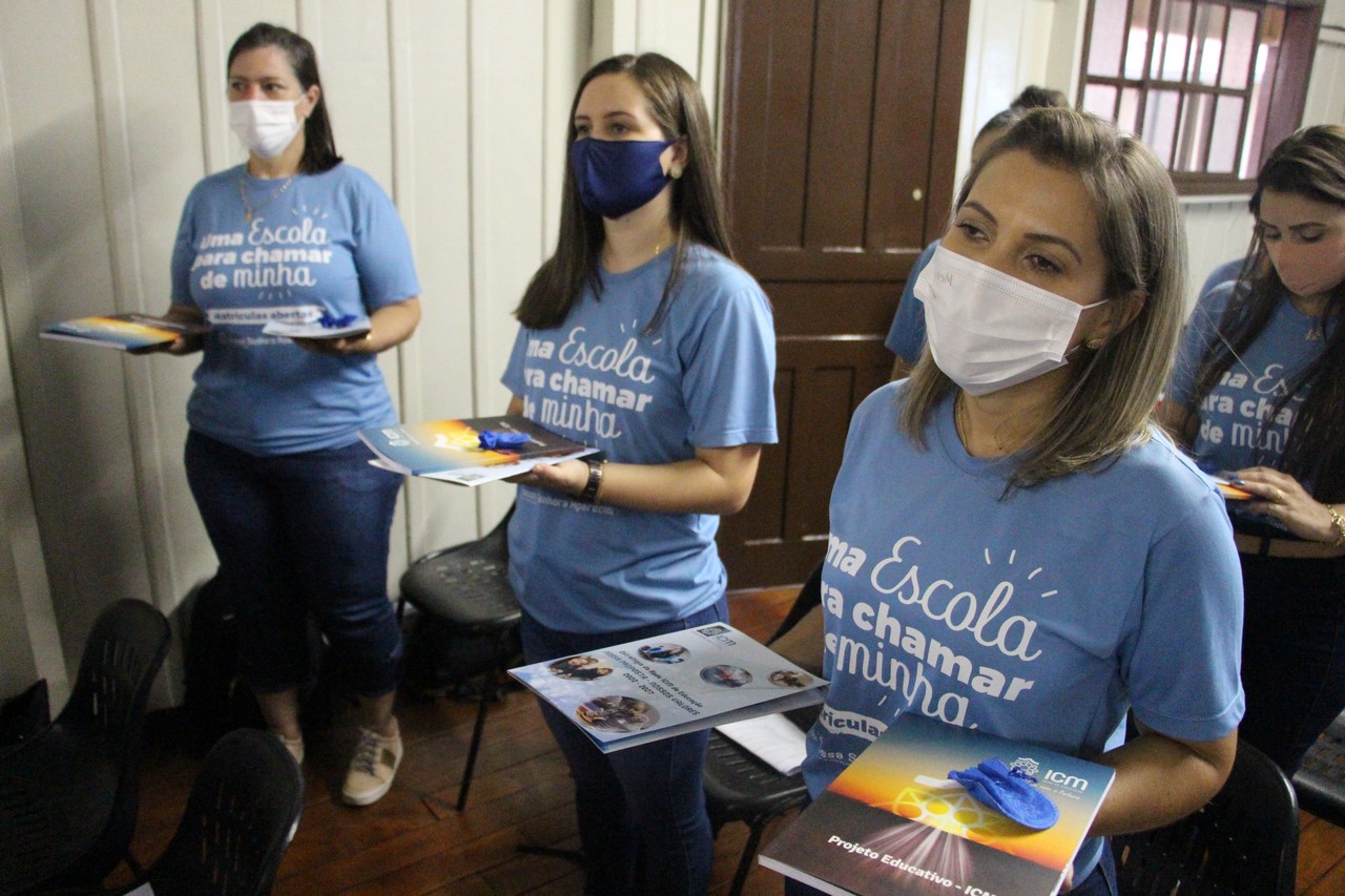 Tanto o Projeto Educativo como a Proposta de Valor tiveram seus conteúdos apresentados pela assessora pedagógica da Rede ICM, professora Lenir Moraes. Em seguida, cada educadora recebeu um exemplar e um botton da instituição.