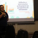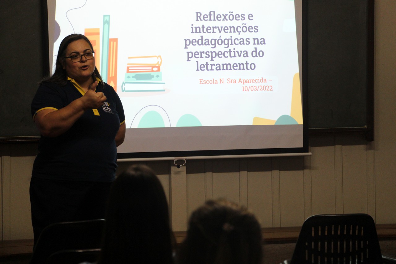 A tarde de encontro contou ainda com momento de oficina de formação, também dinamizada pela professora Lenir Moraes, que abordou o tema da alfabetização, com o tema “Reflexões e intervenções pedagógicas na perspectiva do letramento”.