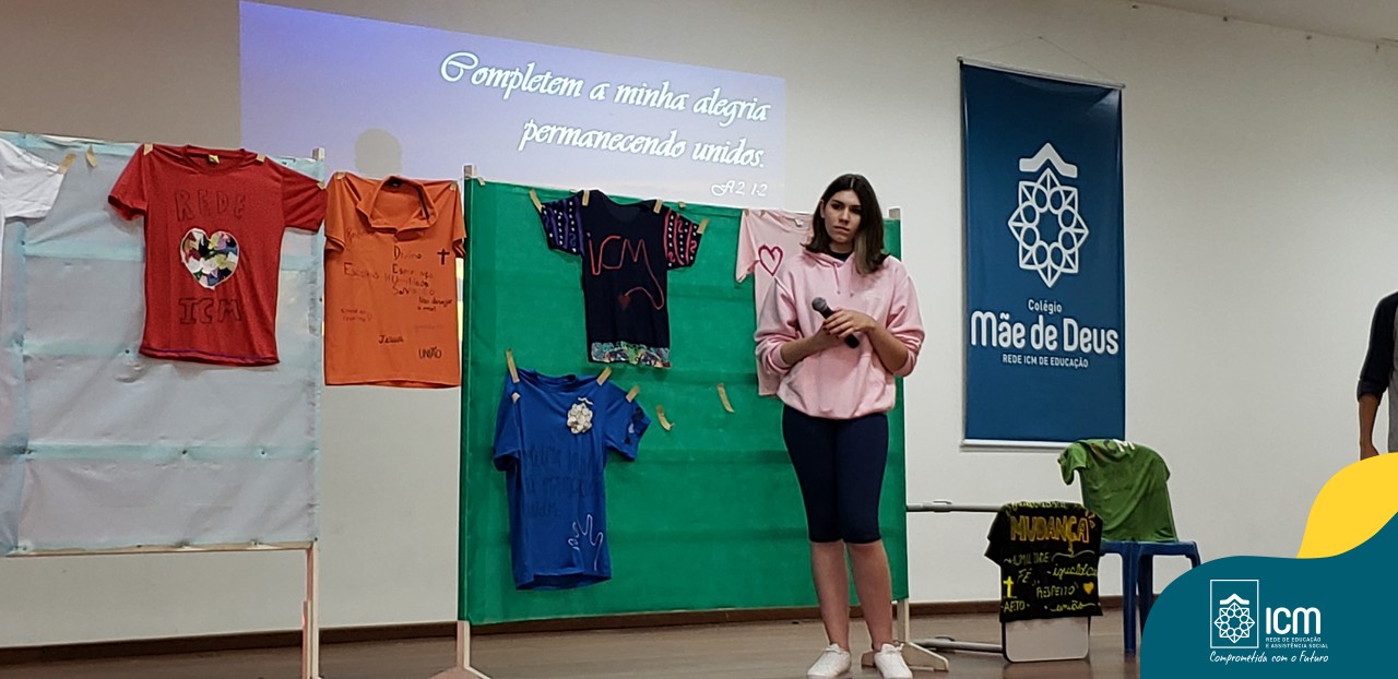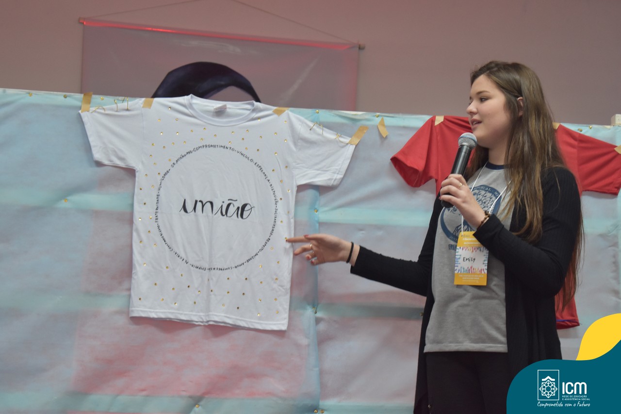 O tema do encontro foi: “Juventude ICM, mãos que se unem pelo bem comum” e o LEMA: “Completem minha alegria permanecendo unidos” do livro de Filipenses 2,1-2. A reflexão do tema foi mediada pelo professor Lucas Bitencourt, que reforçou a importância da juventude “ser reflexo do amor de Deus, não só com palavras mas com atitudes”, além disso ele brindou o grupo com lindas canções. Os jovens, em grupos, customizaram camisetas de diferentes cores com o sentido e significado de suas experiências, a partir das provocações feitas na assessoria.