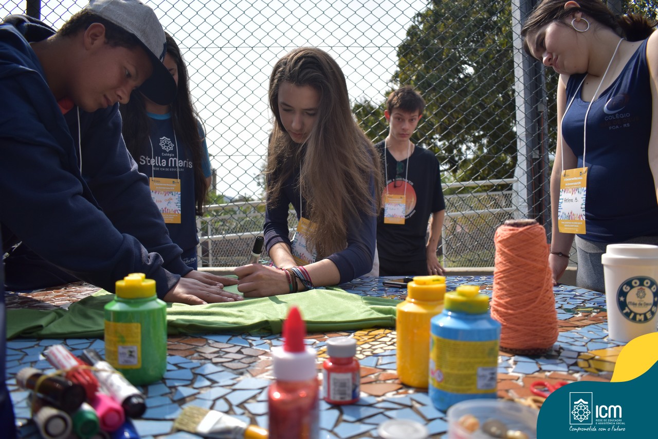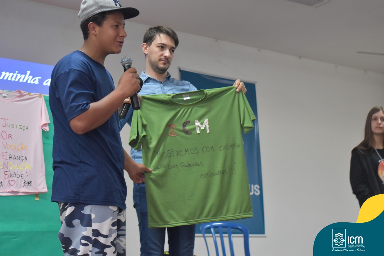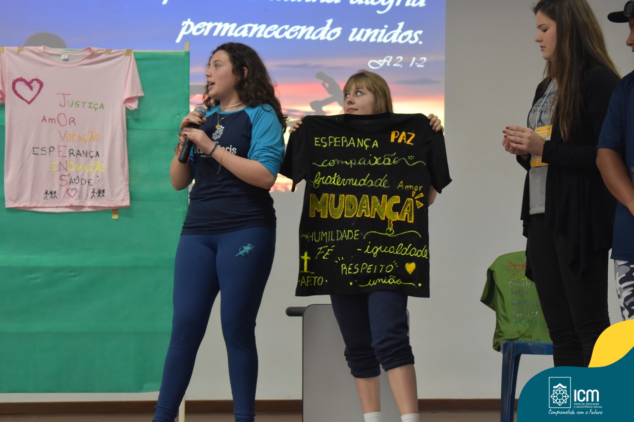 O esporte e alegria também marcaram a integração deste lindo dia em que a Juventude ICM renovou seu compromisso com o bem comum. Cada um/a ajudou a construir o encontro e marcou esta vivência de unidade e amizade. Ao final do encontro, os grupos partilharam o significado da camiseta construída e as ressonâncias da palestra. Na ocasião, os jovens fizeram a troca do símbolo, de modo que cada grupo ficou com uma camiseta diferente daquela que o mesmo construiu. Os jovens ganharam ainda um tercinho como marca positiva da caminhada realizada neste encontro.