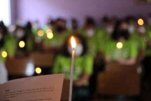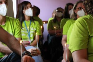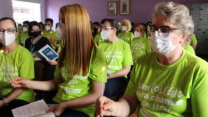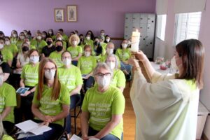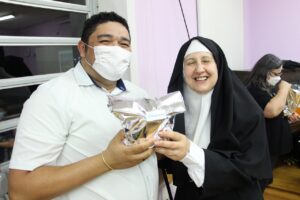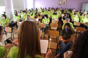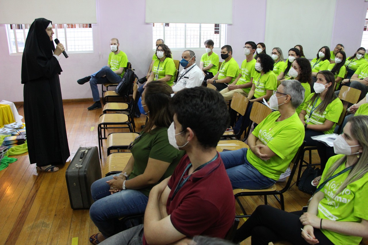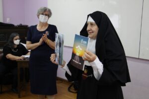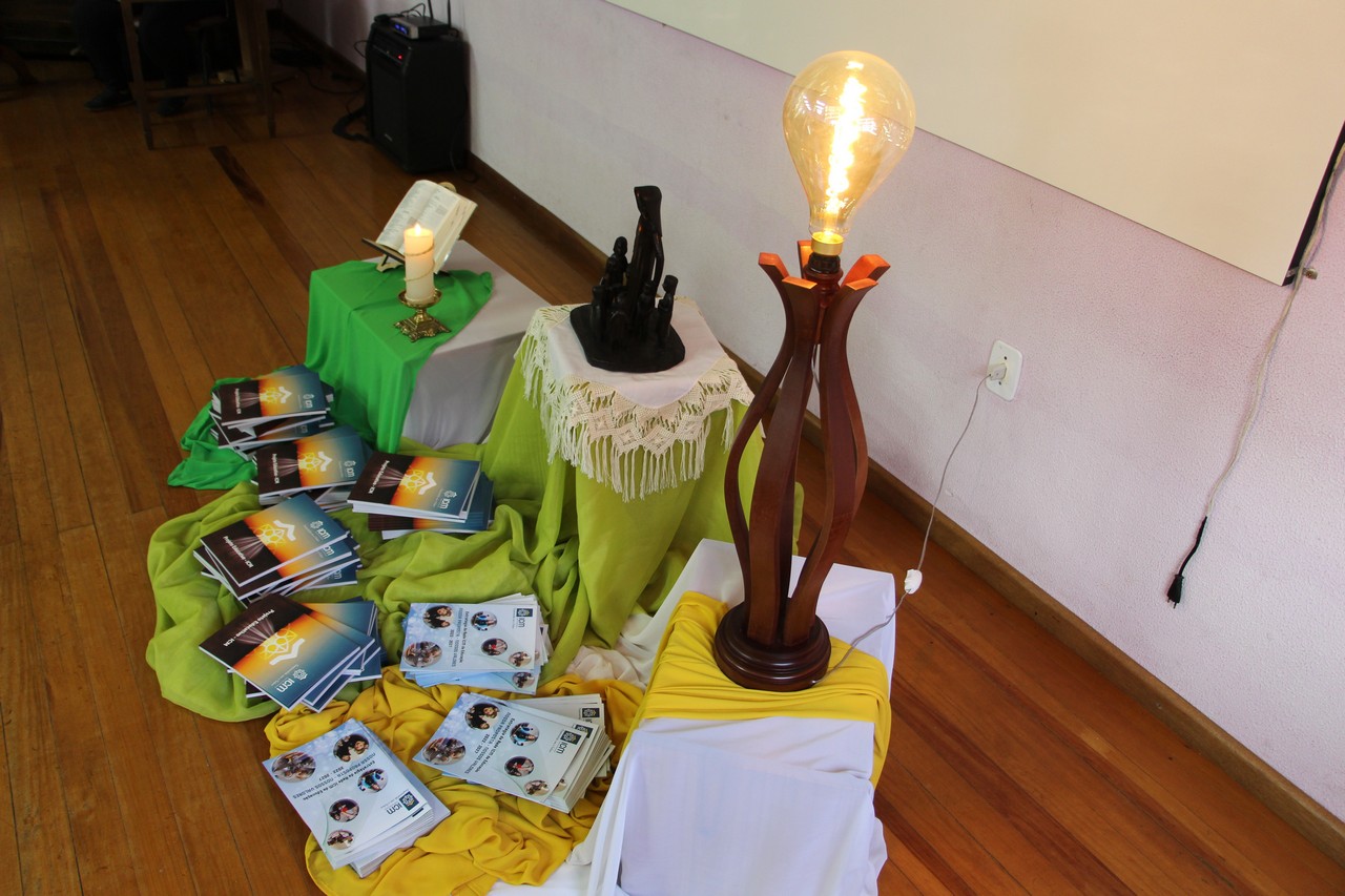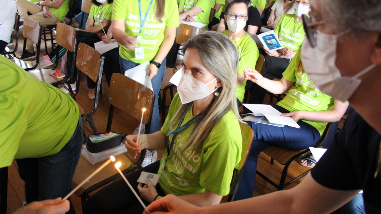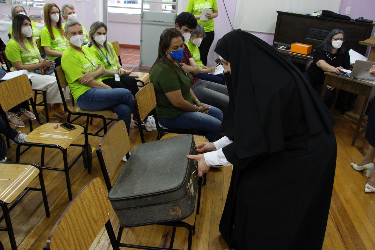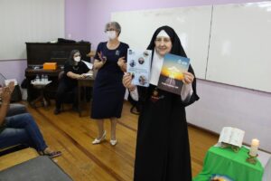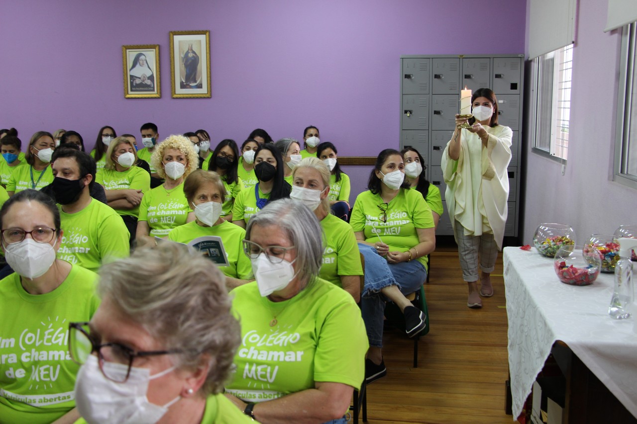 Na celebração, os educadores acenderam velas, ouviram a Palavra de Deus e, num momento de grande emoção, acolheram a ‘presença’ da Bem-Aventurada Bárbara Maix que convidou a todos para assumirem o compromisso coma educação de excelência.
