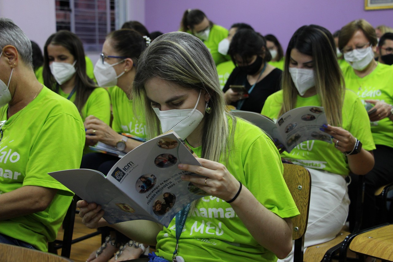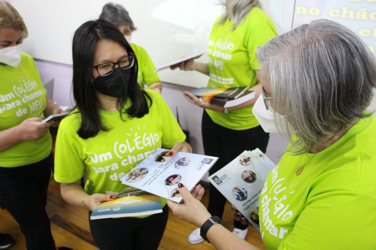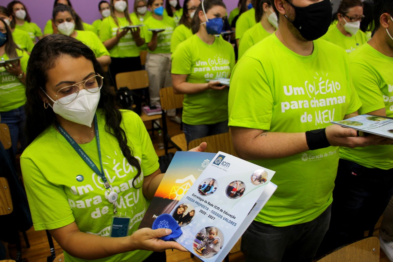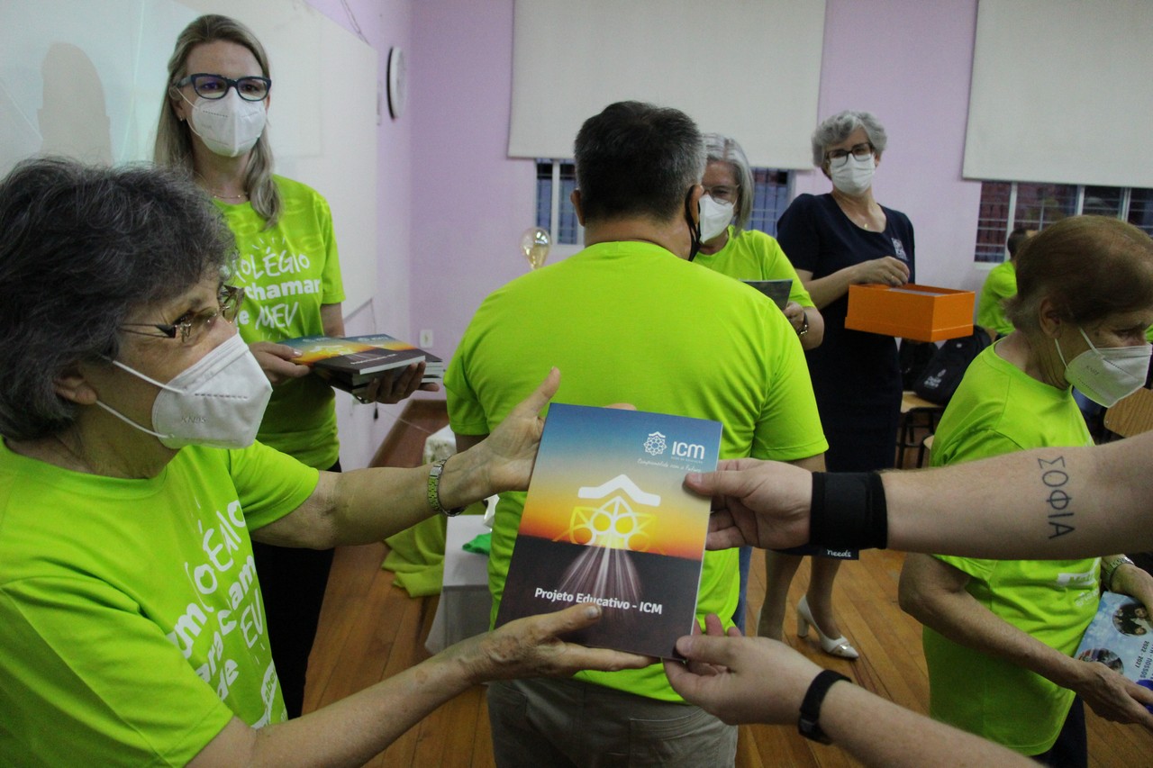 Cada educador e colaborador recebeu um exemplar do Projeto Educativo, da Proposta de Valor da Rede ICM e um botton. Foram abençoados e enviado em missão.
