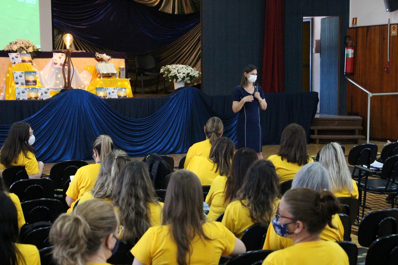 A professora Lenir Moraes, assessora pedagógica da Rede ICM, apresentou a síntese do projeto e da proposta, esclarecendo que não se trata de novos documentos, mas uma resposta atualizada diante das necessidades da realidade.