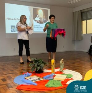 Já o segundo dia começou com o momento todo especial de lançamento do novo documento. Um momento de mística ressaltou o Plano Pastoral como um norte para bem desempenhar a missão evangelizadora e social da Rede ICM. Todas foram abençoadas e enviadas na missão.