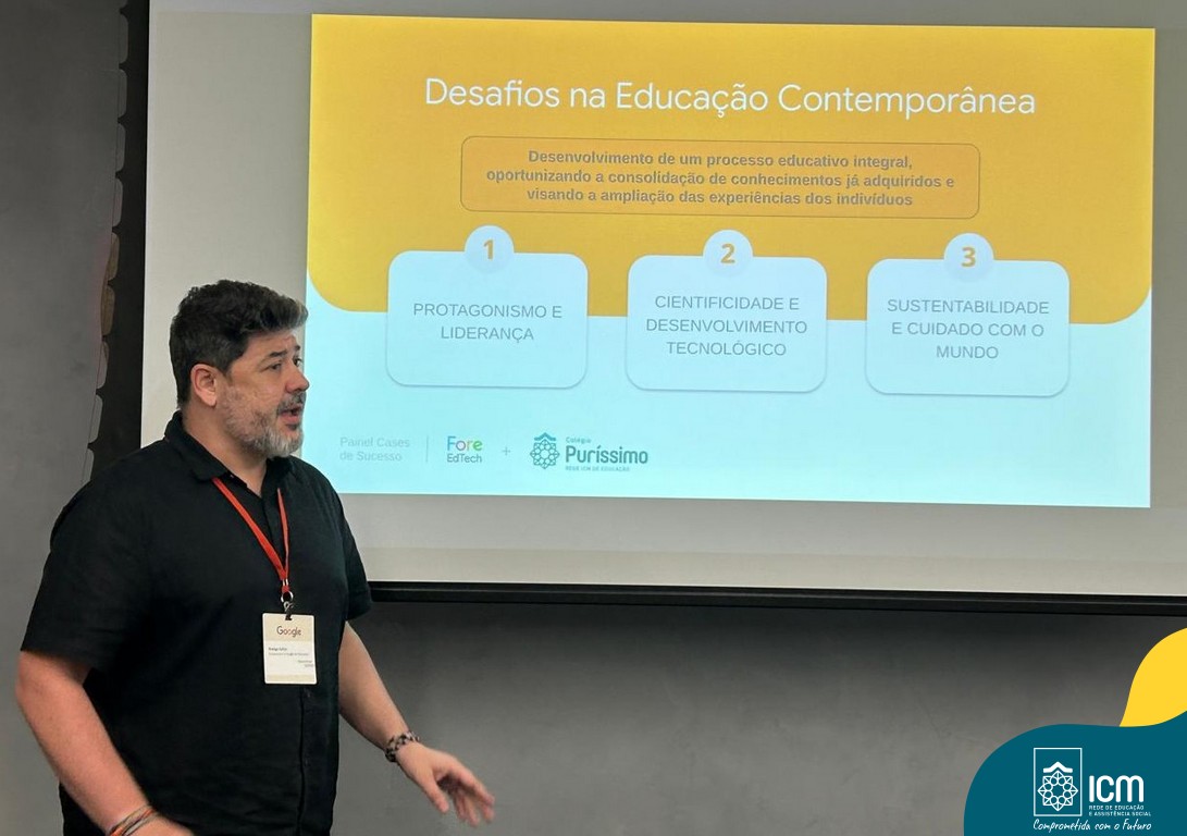 O programa foi apresentado Rodrigo Rufino, coordenador pedagógico e gestor da Foreducation no Puríssimo. Na plateia, além da equipe gestora do Puríssimo, estava a Irmã Elenar Luisa Berghahn, coordenadora do Setor Educação ICM e a professora Lenir Moraes, assessora pedagógica.