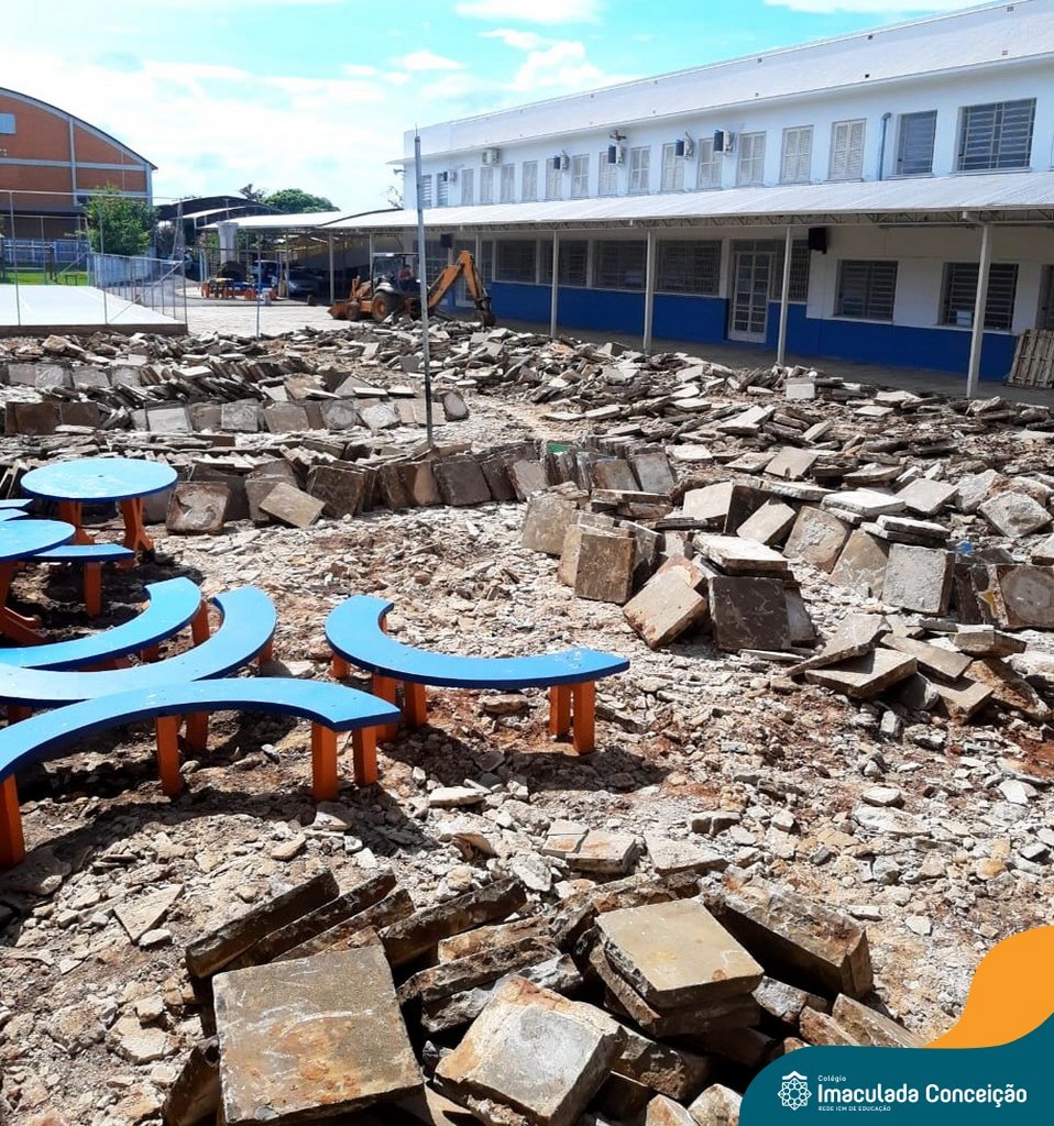 No Colégio Imaculada Conceição, de Dois Irmãos/RS, o período das férias está sendo aproveitado para fazer melhorias com as obras de reforma, ampliação e criação de novos espaços. Uma das novidades será o pátio interno. O espaço ganhará um novo piso. Trabalhadores já removeram o piso antigo, conforme mostram as …