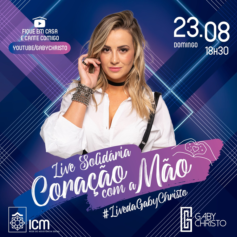 No domingo (23/08), a cantora Gaby Cristo se apresenta na super live “Coração com a mão”. O show online também arrecadará doações em prol das crianças, adolescentes e famílias em situação de vulnerabilidade social, atendidas pelas 07 obras sociais da Rede ICM de Assistência Social. A transmissão inicia às 18h30min. …