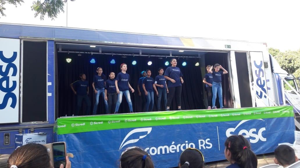 Já em Cachoeira do Sul, o Dia do Desafio contou com atividades realizadas em praça pública. Educandos e educadores da unidade socioassistencial Casa da Criança Sagrado Coração de Jesus participaram do evento a convite do SESC. No palco, as crianças e adolescentes deram um show ao mostrar disposição nas apresentações de coral e dança.