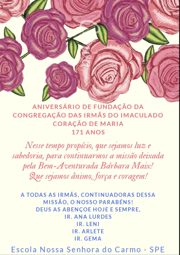 Parabenizamos a Congregação das Irmãs do Imaculado Coração de Maria pelos 171 anos de existência! Deus abençoe!