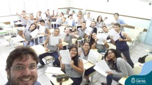 Os alunos receberam as apostilas de Língua Portuguesa, Redação, Química, Física e Matemática, preparadas pela professora Suzete Trindade, e pelos professores Wagner Salles e Isidro Souza que também ministraram as aulas em cada sábado.