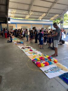 😊🎉 Em Sintonia com a data, nossos alunos repetiram o ato simbólico de produzir tapetes que remetem ao sacramento da comunhão e outros símbolos cheios de significado
