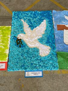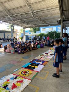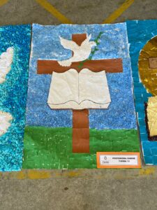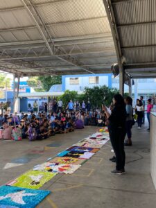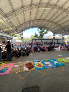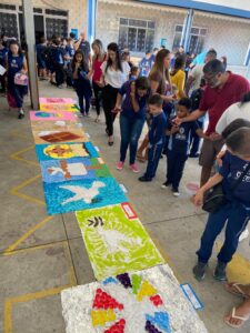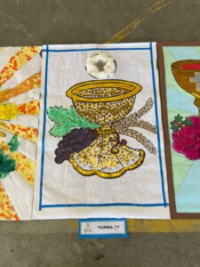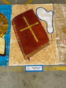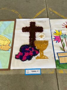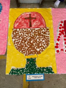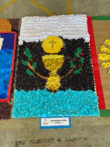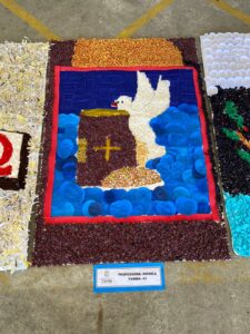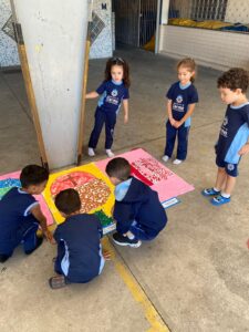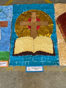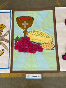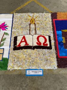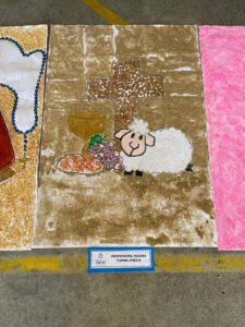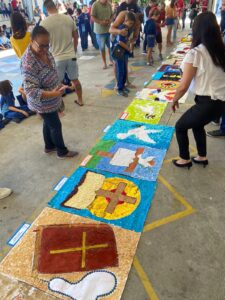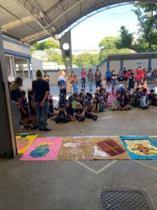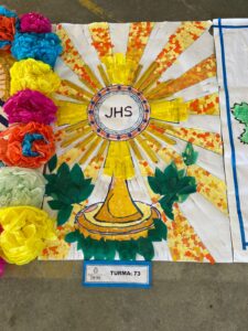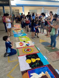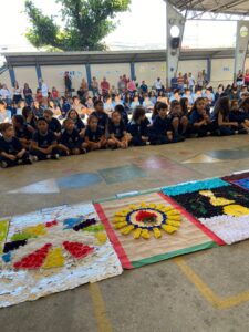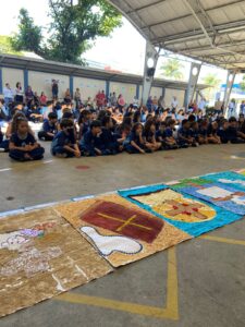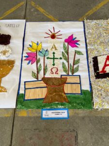 😊🎉 Em Sintonia com a data, nossos alunos repetiram o ato simbólico de produzir tapetes que remetem ao sacramento da comunhão e outros símbolos cheios de significado