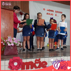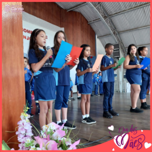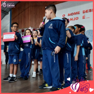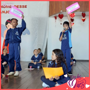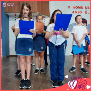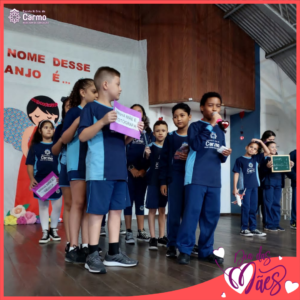 “O nome desse anjo é…MÃE!” foi tema que animou as apresentações das turmas do 1º ao 5º ano. Muitas manifestações de carinho e gratidão às mães fizeram do palco de nossa escola, lugar do abraço coletivo ‘Escola e Família’! Mãe é aquela que cuida de nós como um anjo: sempre presente, atenta e amável cuidadora da vida!