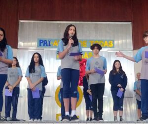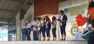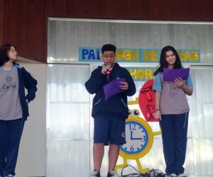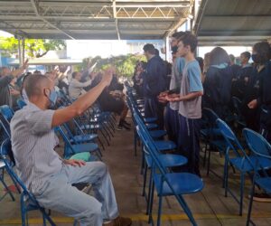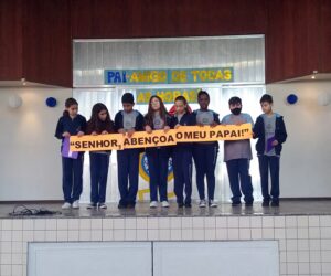 Os estudantes prepararam um lindo momento de oração e homenagem para os responsáveis.