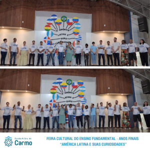 Reunidos em clima de muita festa, famílias, estudantes, professores e irmãs, vivenciaram uma tarde de sábado especial! Como acontece a cada ano, a Feira Cultural mobiliza as turmas do 6º ao 9º ano do Ensino Fundamental para um rico e divertido aprendizado acerca dos temas e conteúdos estudados em sala de aula, num projeto interdisciplinar.