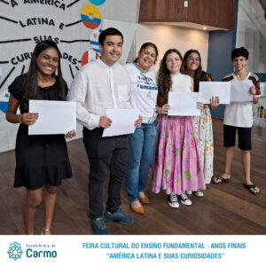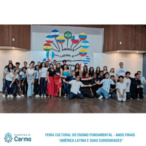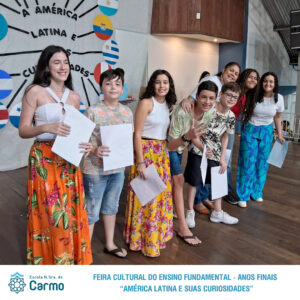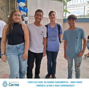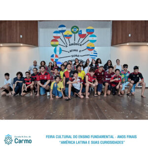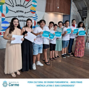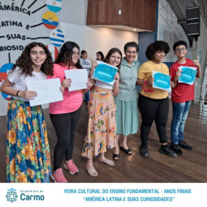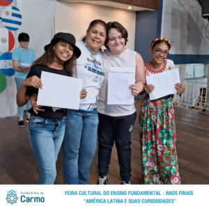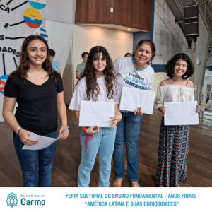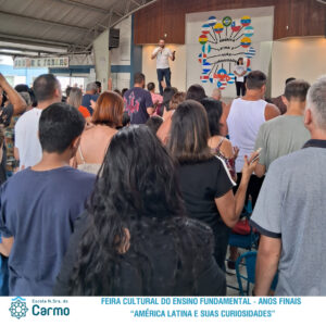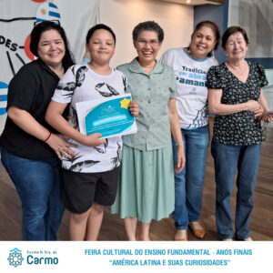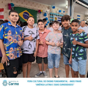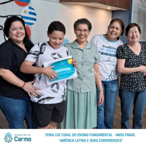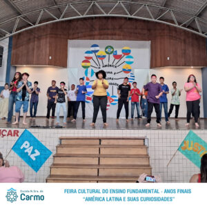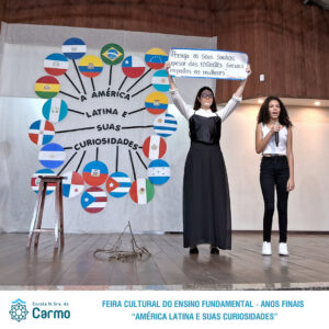 Reunidos em clima de muita festa, famílias, estudantes, professores e irmãs, vivenciaram uma tarde de sábado especial! Como acontece a cada ano, a Feira Cultural mobiliza as turmas do 6º ao 9º ano do Ensino Fundamental para um rico e divertido aprendizado acerca dos temas e conteúdos estudados em sala de aula, num projeto interdisciplinar.