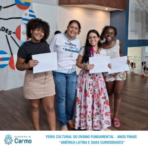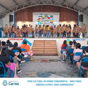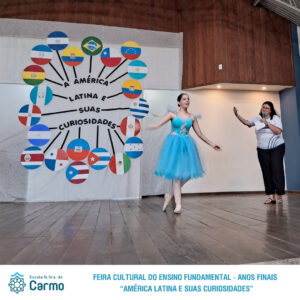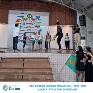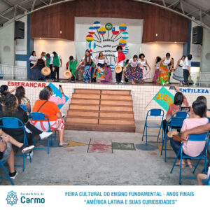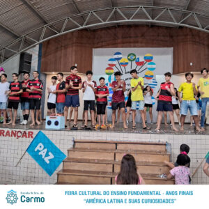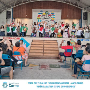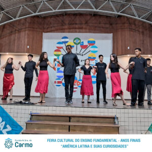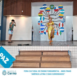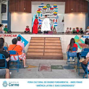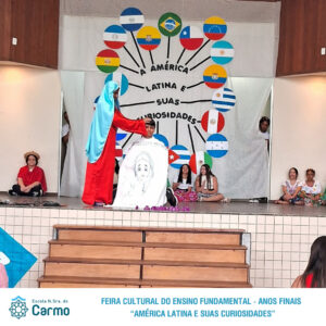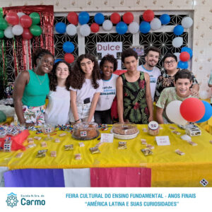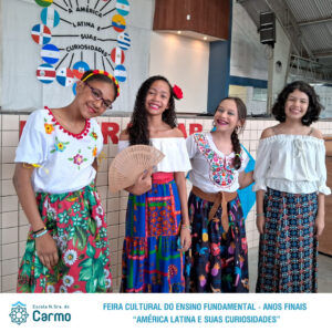 Este ano, a feira trouxe o seguinte tema: “América Latina e suas curiosidades”. E cada turma preparou apresentações que caracterizam aspectos culturais curiosos de alguns países pertencentes à América Latina. Além do palco, também ornamentaram barracas com cores e comidas típicas!