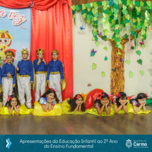 Era uma vez…” foi o tema que encantou quem veio participar! Era uma vez…Peter Pan, com o Maternal; Turma da Mônica, com o Pré 1A; Pinóquio, com o Pré 1B; Sítio do Pica-Pau Amarelo, com o Pré 2A; João e Maria, com o Pré 2B! E não parou por aí, ainda tivemos: Era uma vez…Chapéuzinho Vermelho, com a turma 11; Alice no País das Maravilhas, com a turma 13; Branca de Neve, com a turma 23; e para formar nosso Reino Encantado, a turma 21!
