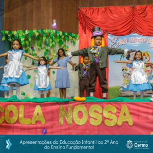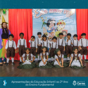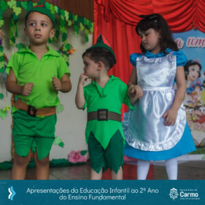 Era uma vez…” foi o tema que encantou quem veio participar! Era uma vez…Peter Pan, com o Maternal; Turma da Mônica, com o Pré 1A; Pinóquio, com o Pré 1B; Sítio do Pica-Pau Amarelo, com o Pré 2A; João e Maria, com o Pré 2B! E não parou por aí, ainda tivemos: Era uma vez…Chapéuzinho Vermelho, com a turma 11; Alice no País das Maravilhas, com a turma 13; Branca de Neve, com a turma 23; e para formar nosso Reino Encantado, a turma 21!