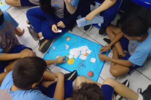 A moçada mandou ver na criatividade e, com muita dedicação, produziram jogos de tabuleiro com perguntas e respostas envolvendo as disciplinas de Matemática, Ciências, Inglês, Português e História.