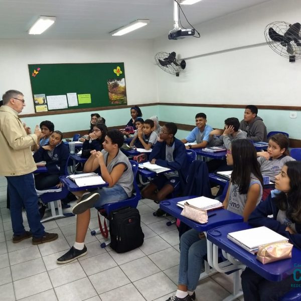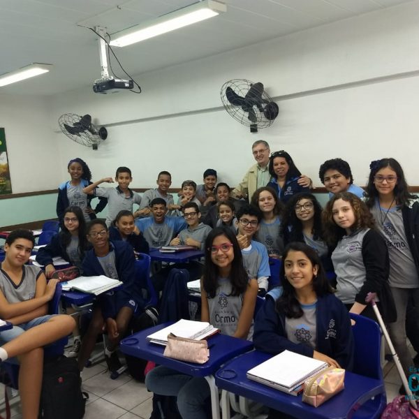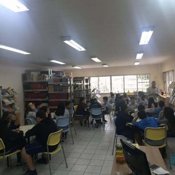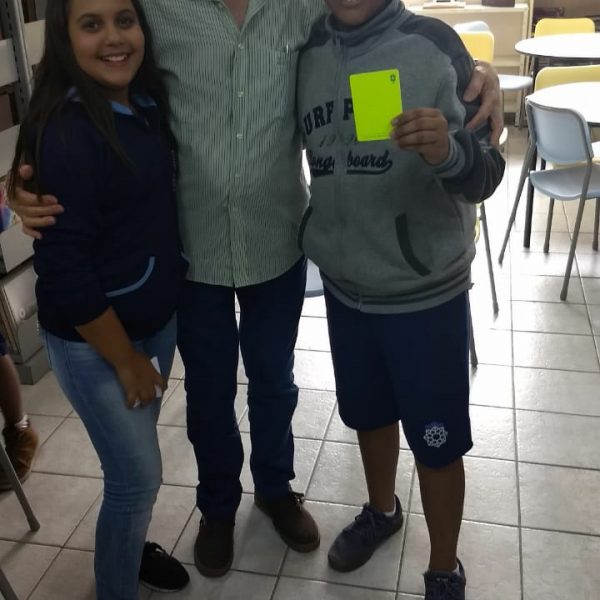 O escritor Fernando Carraro visitou as turmas do 7º ano, nos turnos manhã e tarde. 📕📗💖💖