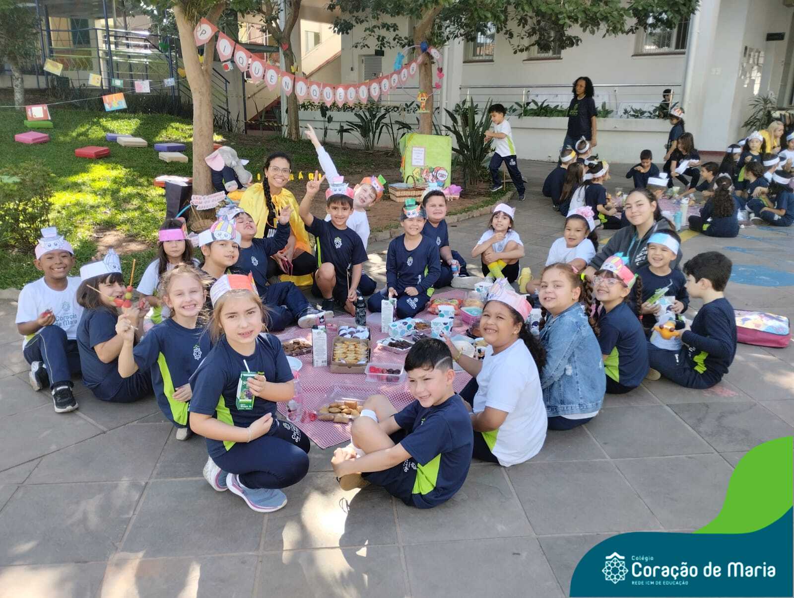Os alunos dos primeiros anos do Ensino Fundamental, participaram de um piquenique literário em celebração ao Dia do Livro.