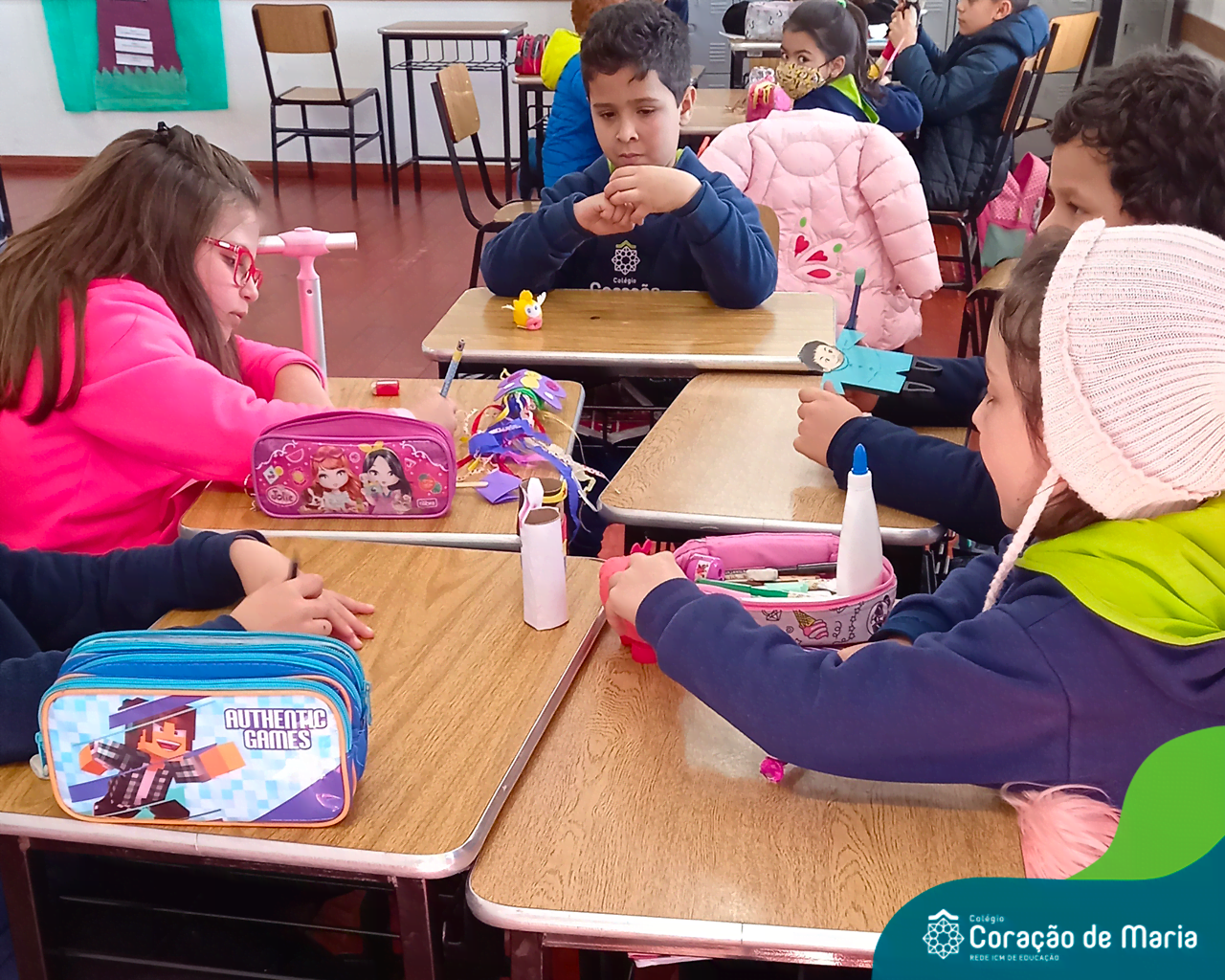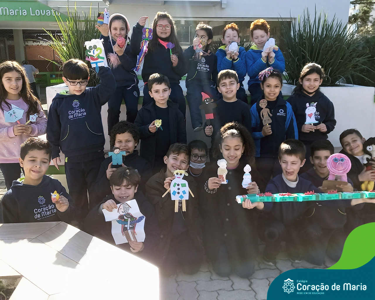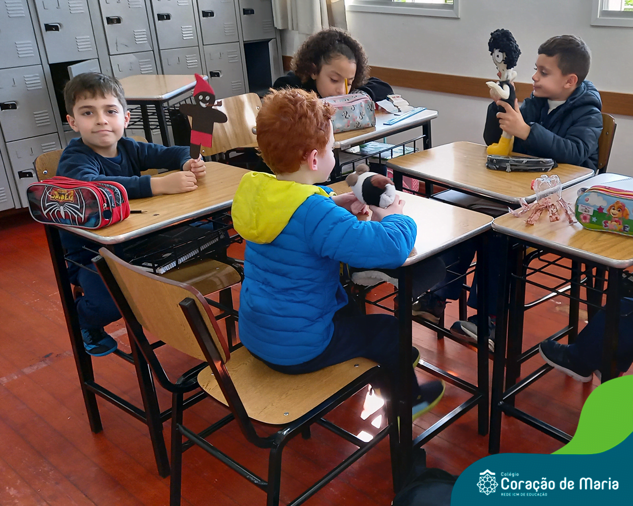 A turma 23 realizou uma atividade de produção textual. Os alunos confeccionaram personagens e em grupos realizaram a produção de um texto coletivo utilizando os personagens criados. O objetivo da atividade foi desenvolver de maneira lúdica e criativa a escrita de textos.