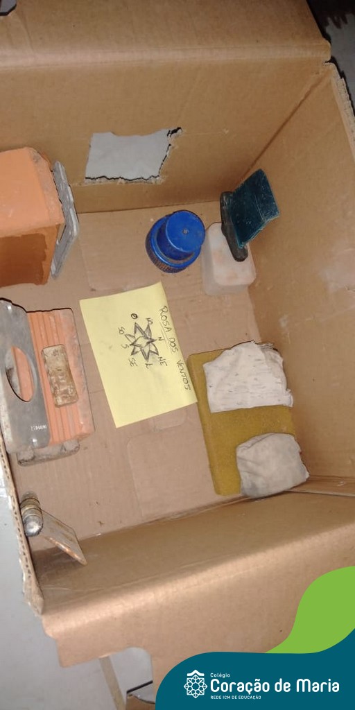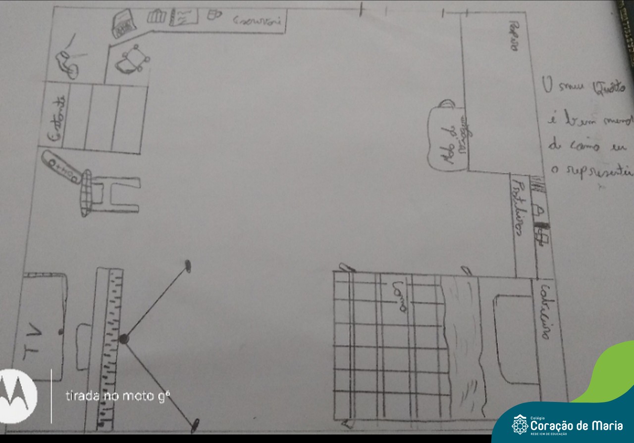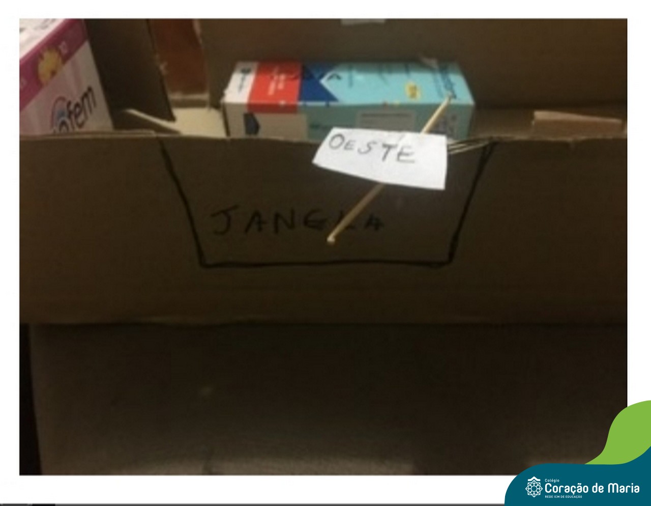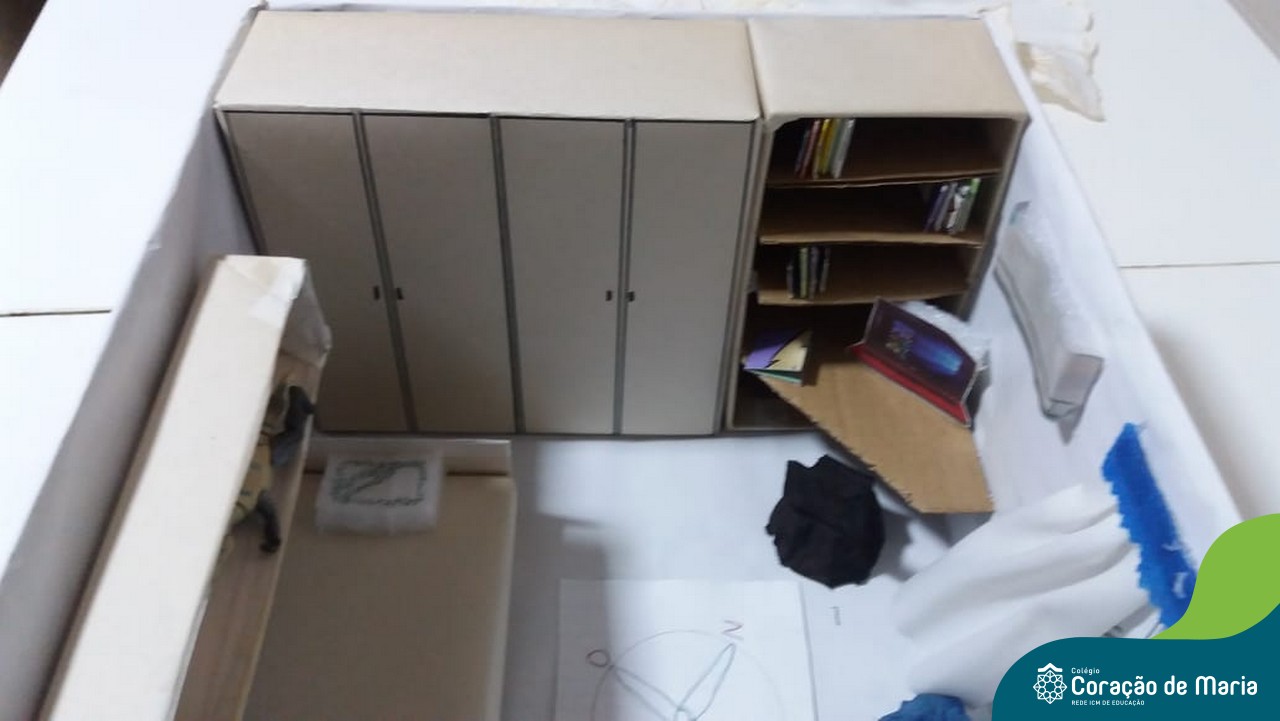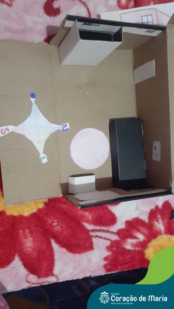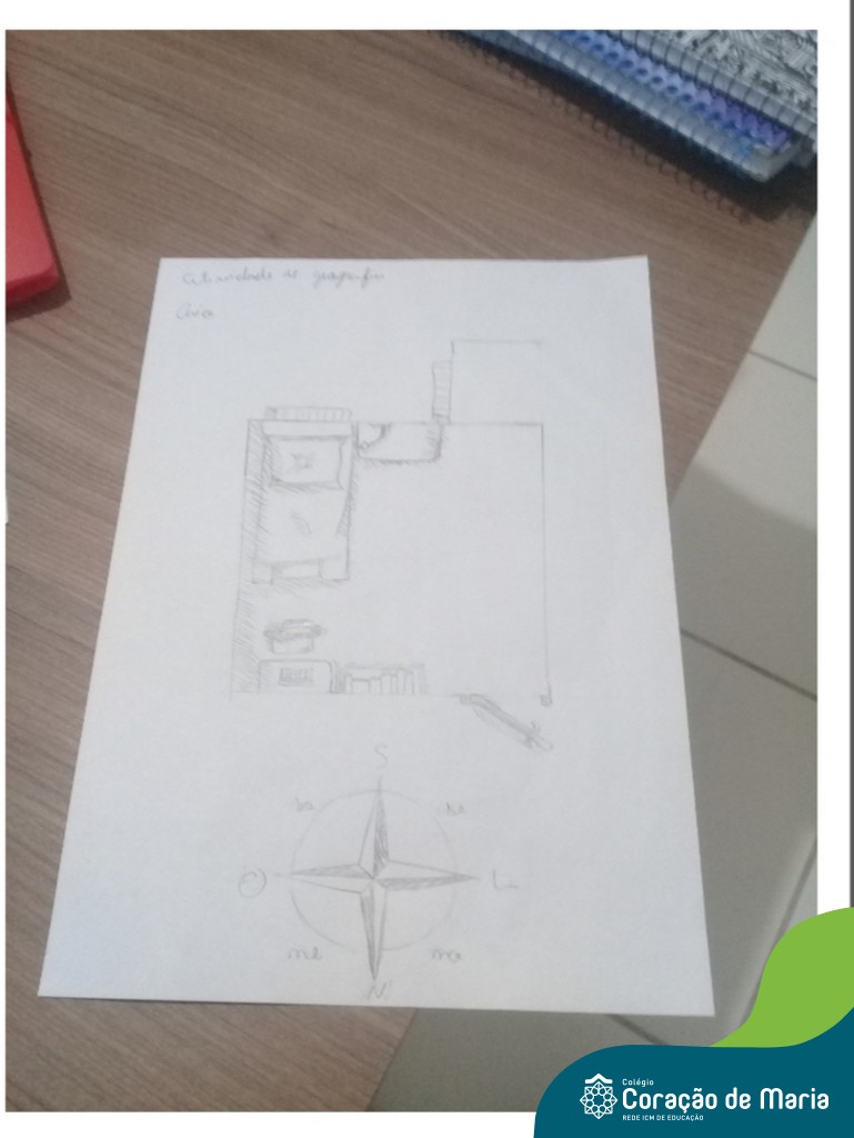 As turmas 61, 62 e 63 foram desafiados pela Professora Meliana a utilizar as representações gráficas através de maquetes e plantas, na reprodução de seus quartos. Foram utilizados os conhecimentos construídos durante as atividades domiciliares: orientação e localização, representações cartográficas, mapas, legendas. Nessas representações os alunos usaram a orientação pelo sol para indicar o ponto cardeal onde se localizava o quarto na casa, aprendendo assim a se localizar no meio onde vive.