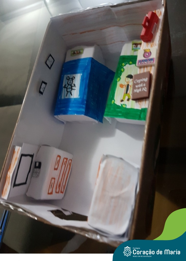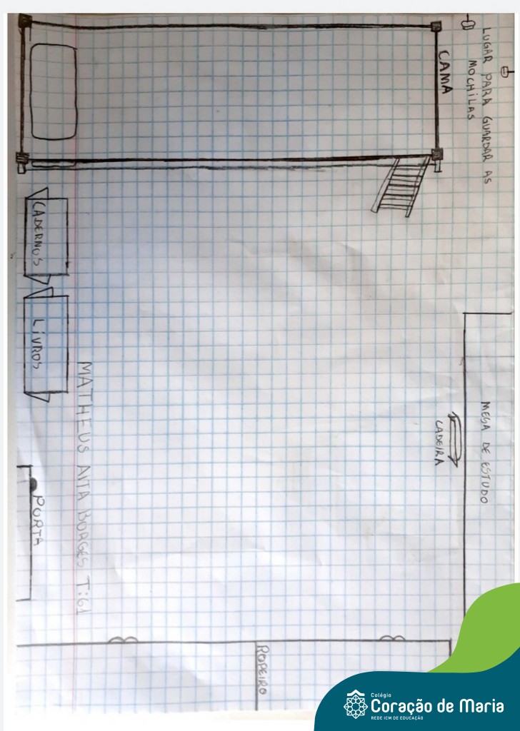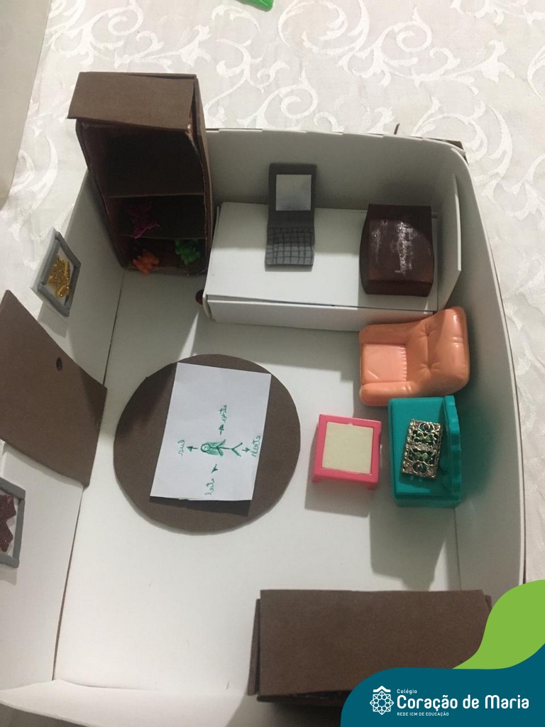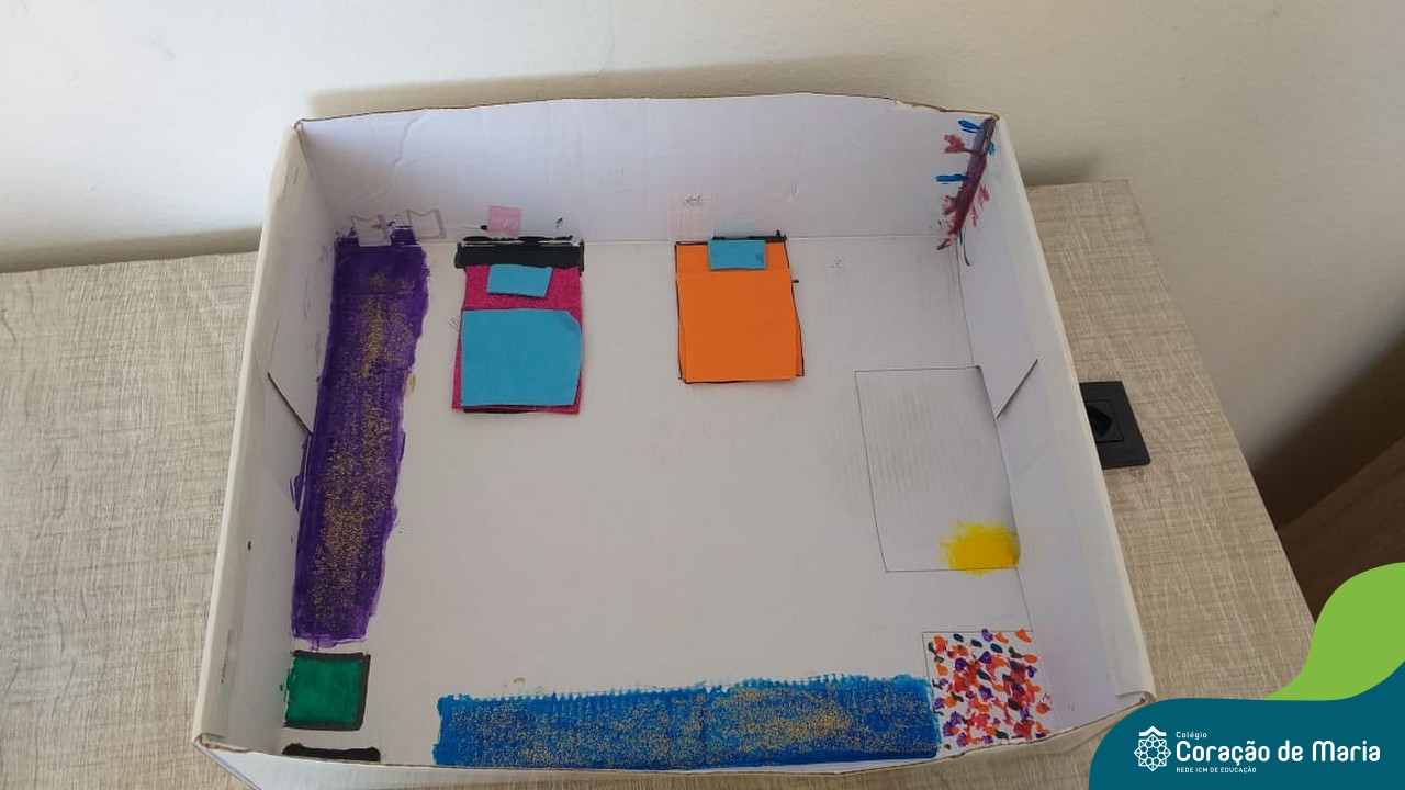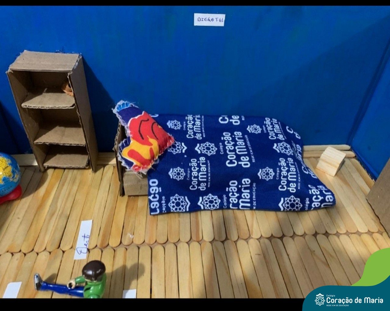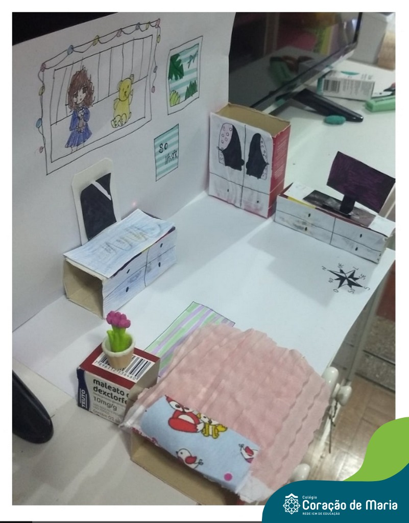 As turmas 61, 62 e 63 foram desafiados pela Professora Meliana a utilizar as representações gráficas através de maquetes e plantas, na reprodução de seus quartos. Foram utilizados os conhecimentos construídos durante as atividades domiciliares: orientação e localização, representações cartográficas, mapas, legendas. Nessas representações os alunos usaram a orientação pelo sol para indicar o ponto cardeal onde se localizava o quarto na casa, aprendendo assim a se localizar no meio onde vive.