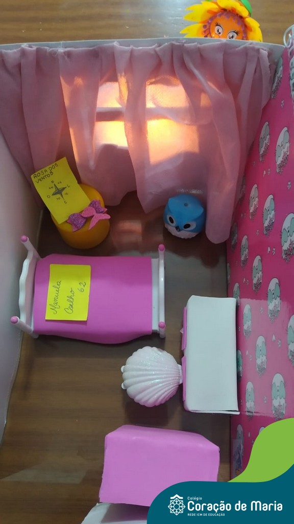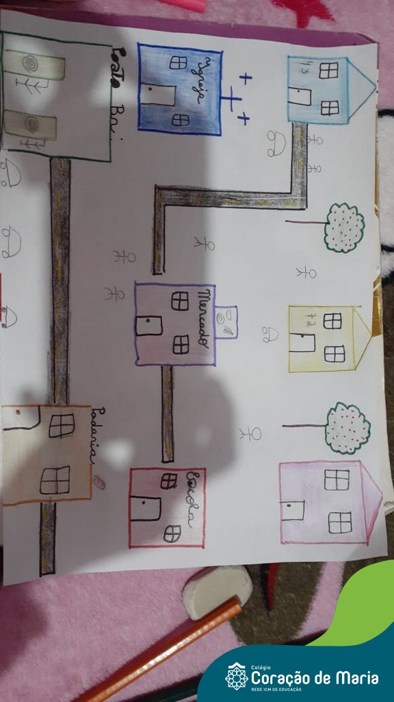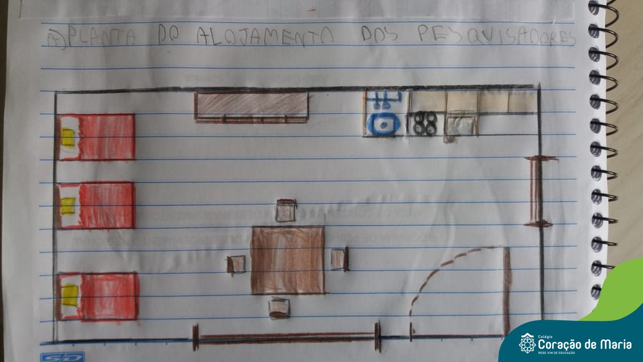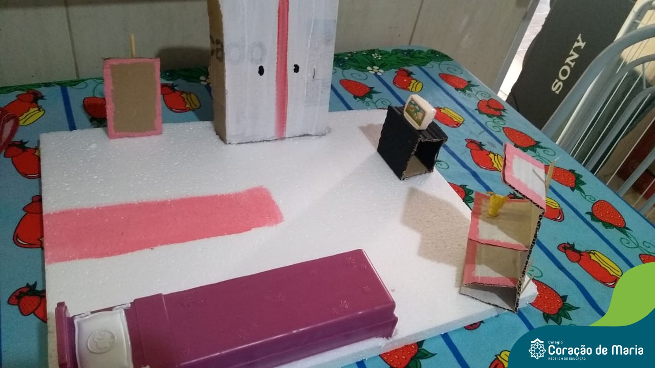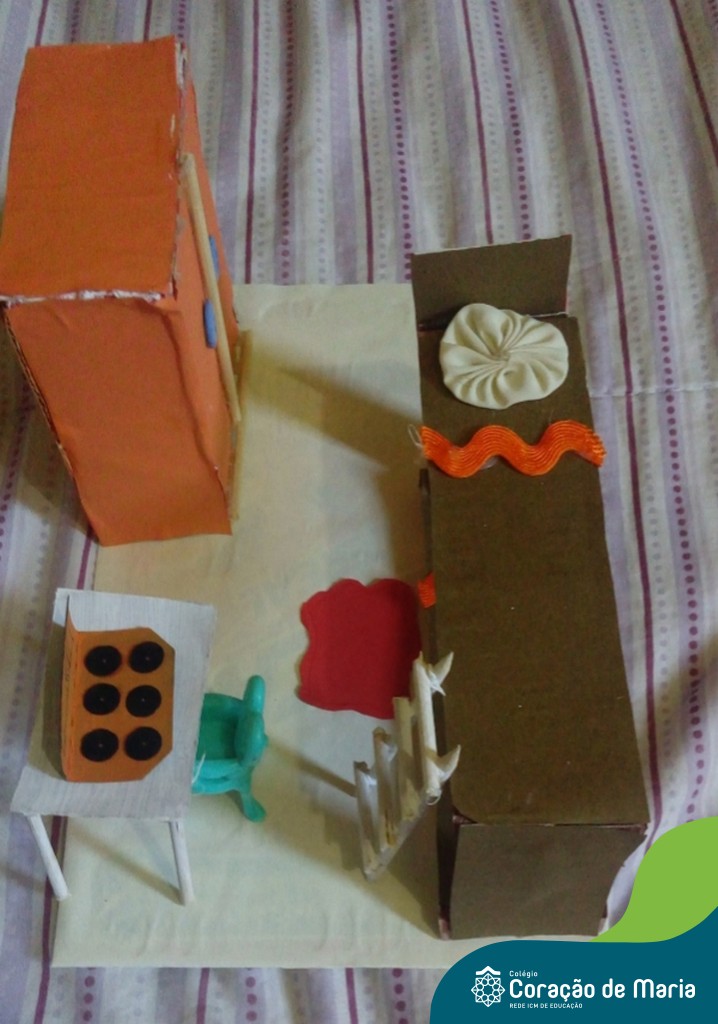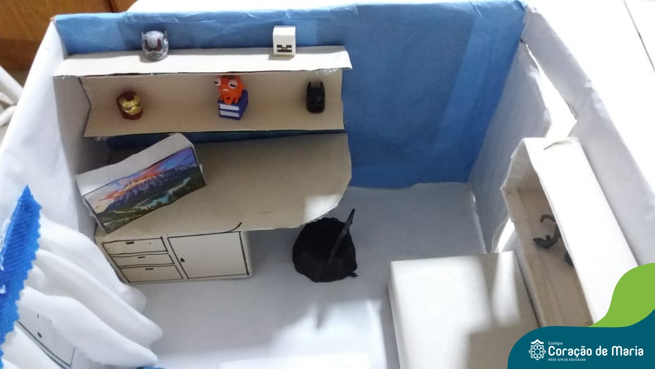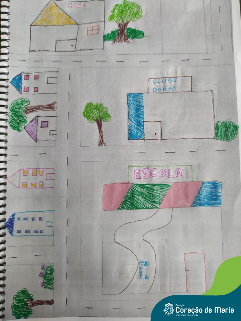 As turmas 61, 62 e 63 foram desafiados pela Professora Meliana a utilizar as representações gráficas através de maquetes e plantas, na reprodução de seus quartos. Foram utilizados os conhecimentos construídos durante as atividades domiciliares: orientação e localização, representações cartográficas, mapas, legendas. Nessas representações os alunos usaram a orientação pelo sol para indicar o ponto cardeal onde se localizava o quarto na casa, aprendendo assim a se localizar no meio onde vive.