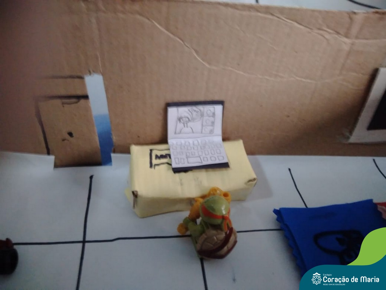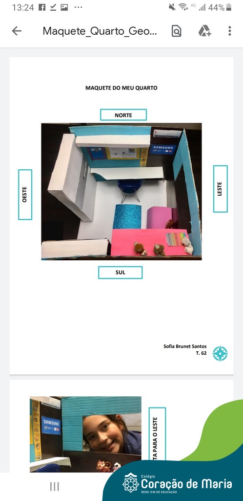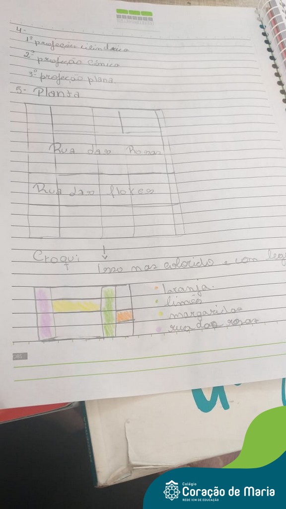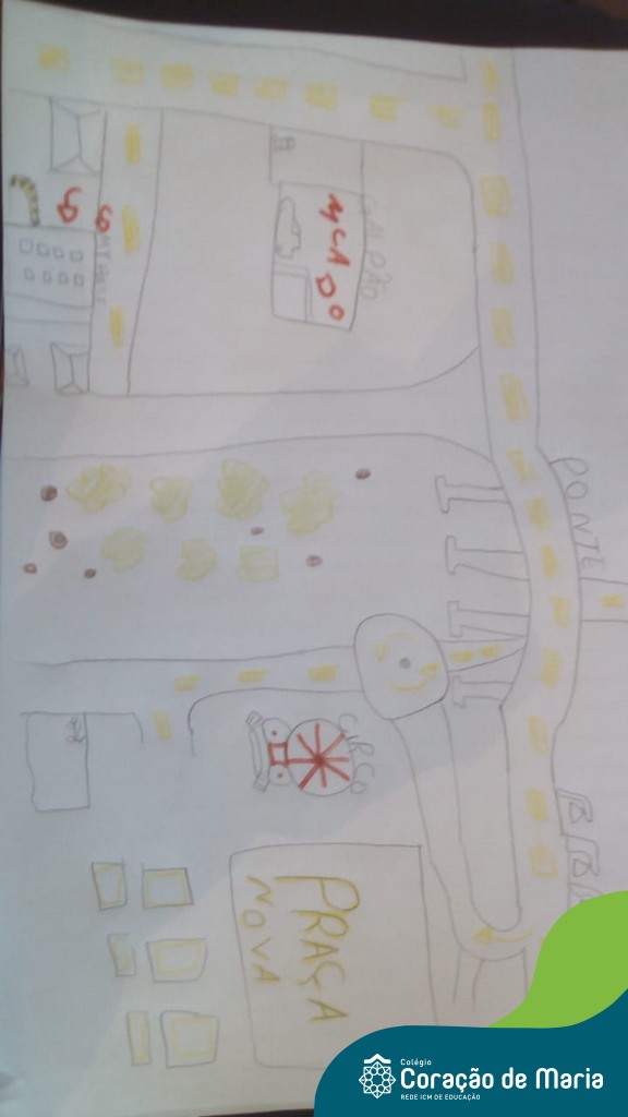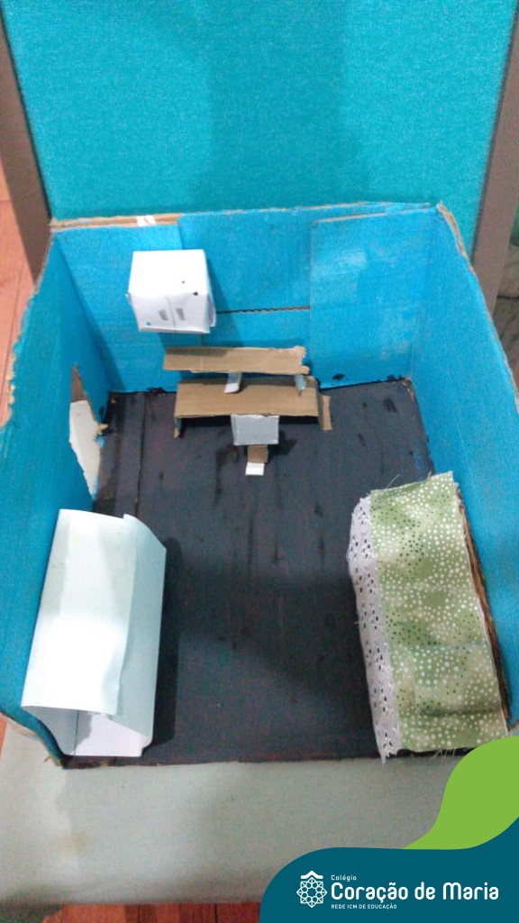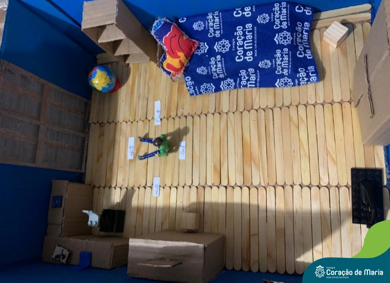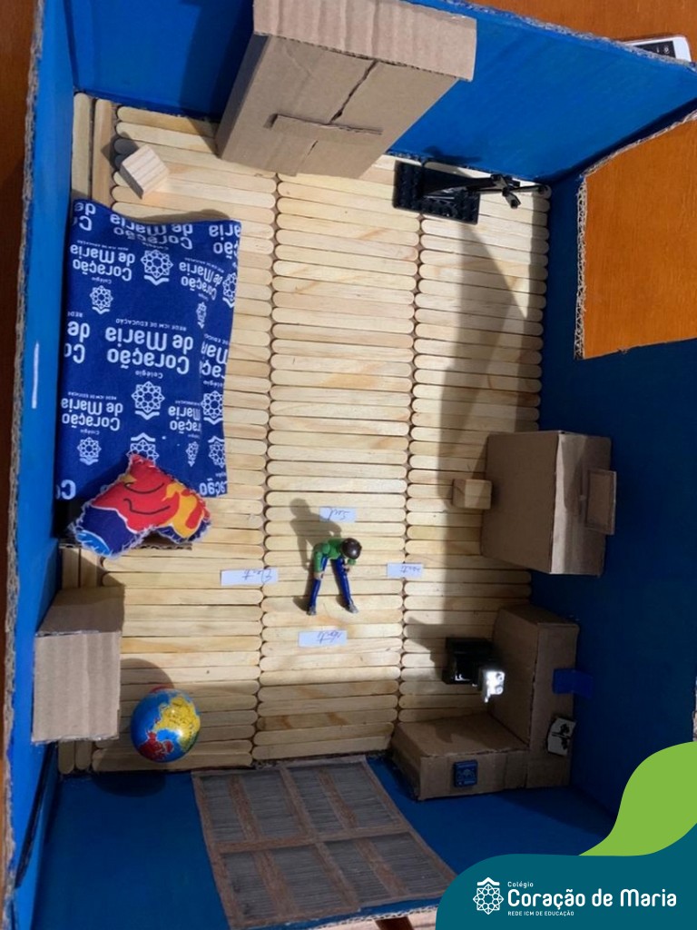 As turmas 61, 62 e 63 foram desafiados pela Professora Meliana a utilizar as representações gráficas através de maquetes e plantas, na reprodução de seus quartos. Foram utilizados os conhecimentos construídos durante as atividades domiciliares: orientação e localização, representações cartográficas, mapas, legendas. Nessas representações os alunos usaram a orientação pelo sol para indicar o ponto cardeal onde se localizava o quarto na casa, aprendendo assim a se localizar no meio onde vive.