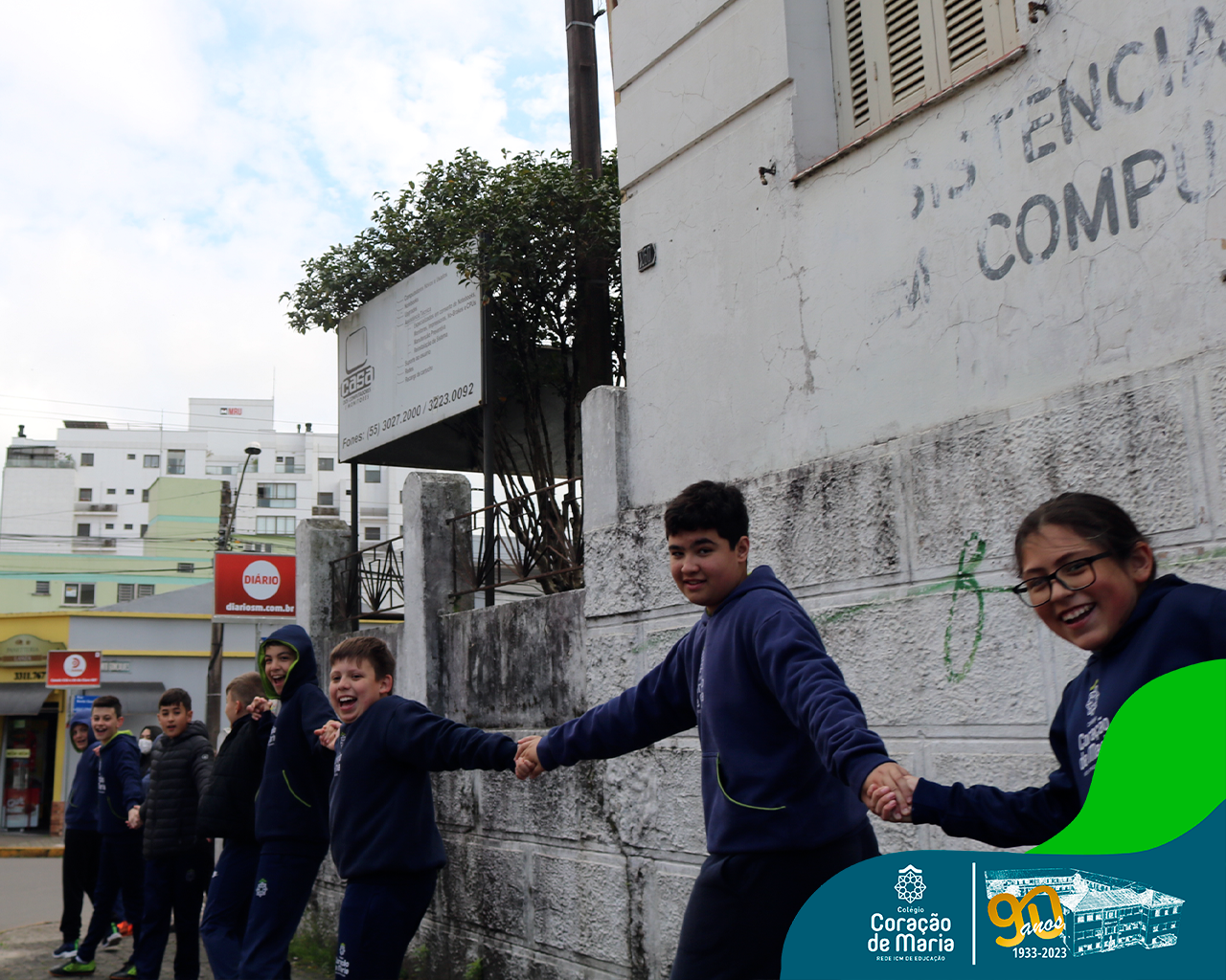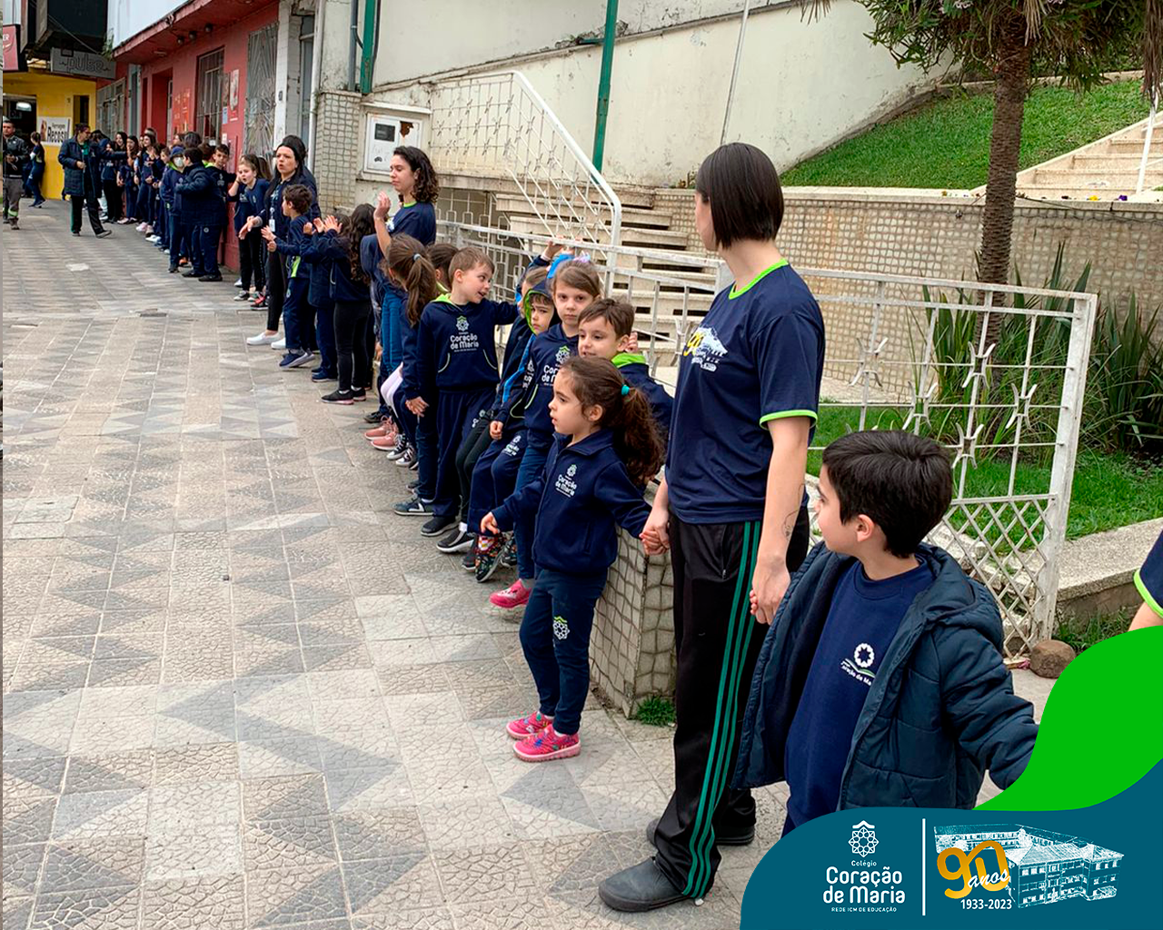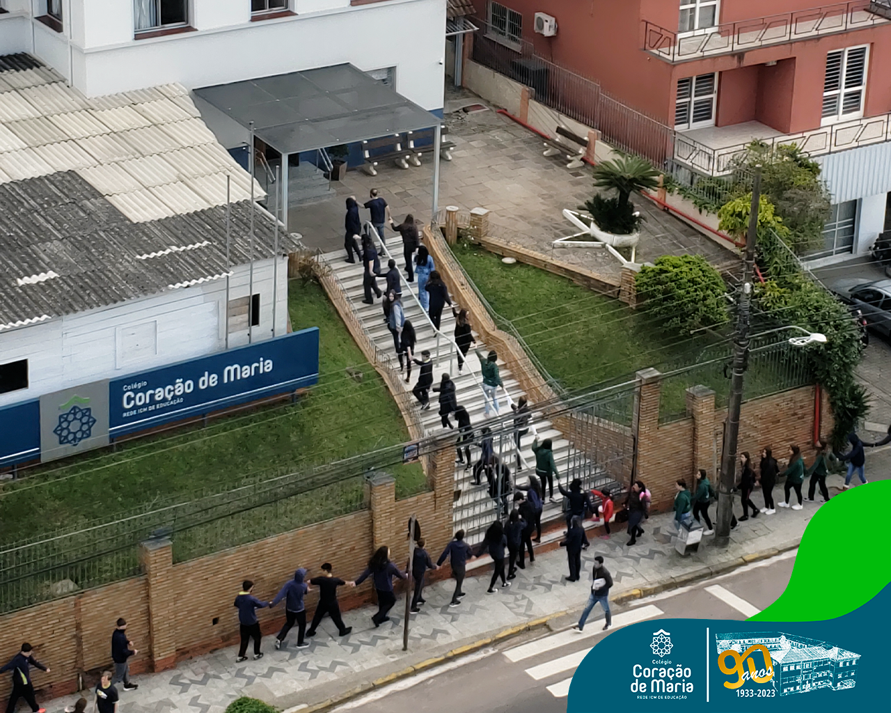 Como expressão de nossa gratidão pelo serviço prestado à sociedade, alunos e colaboradores de ambos os turnos, deram um abraço simbólico ao Colégio. Ao fazer este gesto de carinho, Ir. Maria Zeni, Diretora, convidou para que cada um e cada uma trouxesse presente em seu coração as milhares de pessoas que estudaram e trabalharam no CCM e que, no seu tempo, construíram história: manos, pais, tios, avós, bisavós, padrinhos, amigos da família e colaboradores.