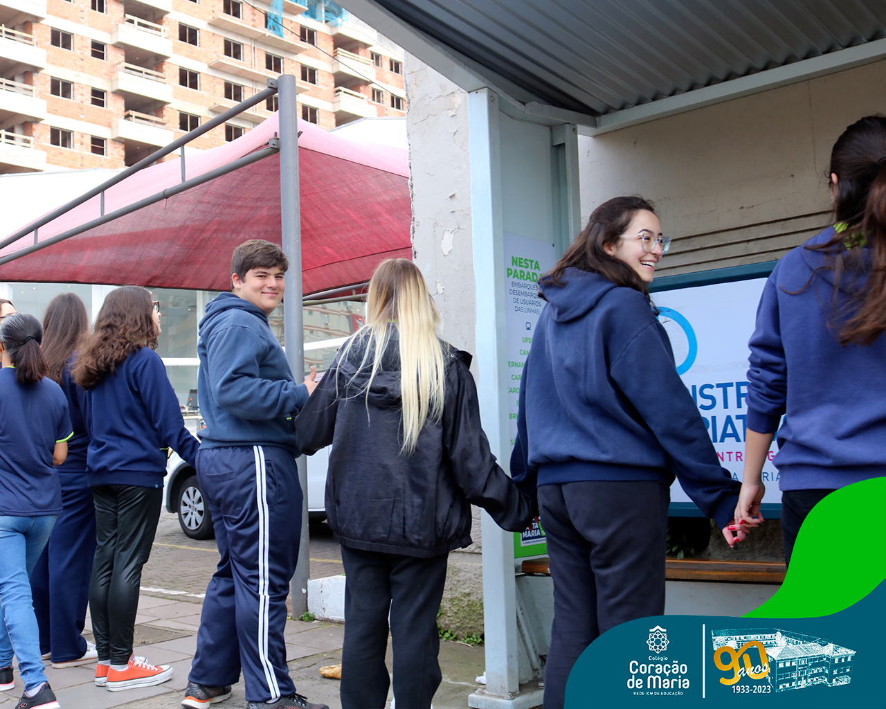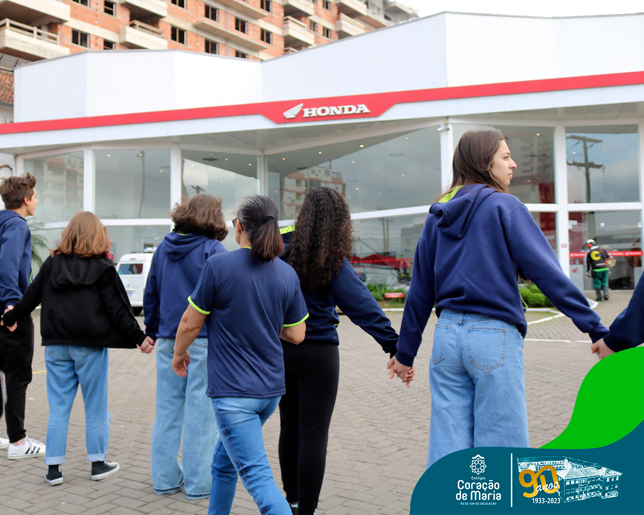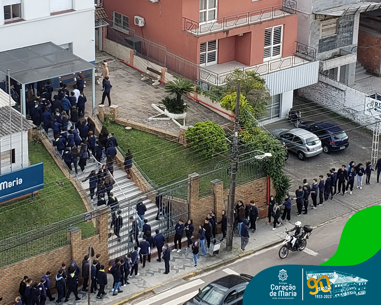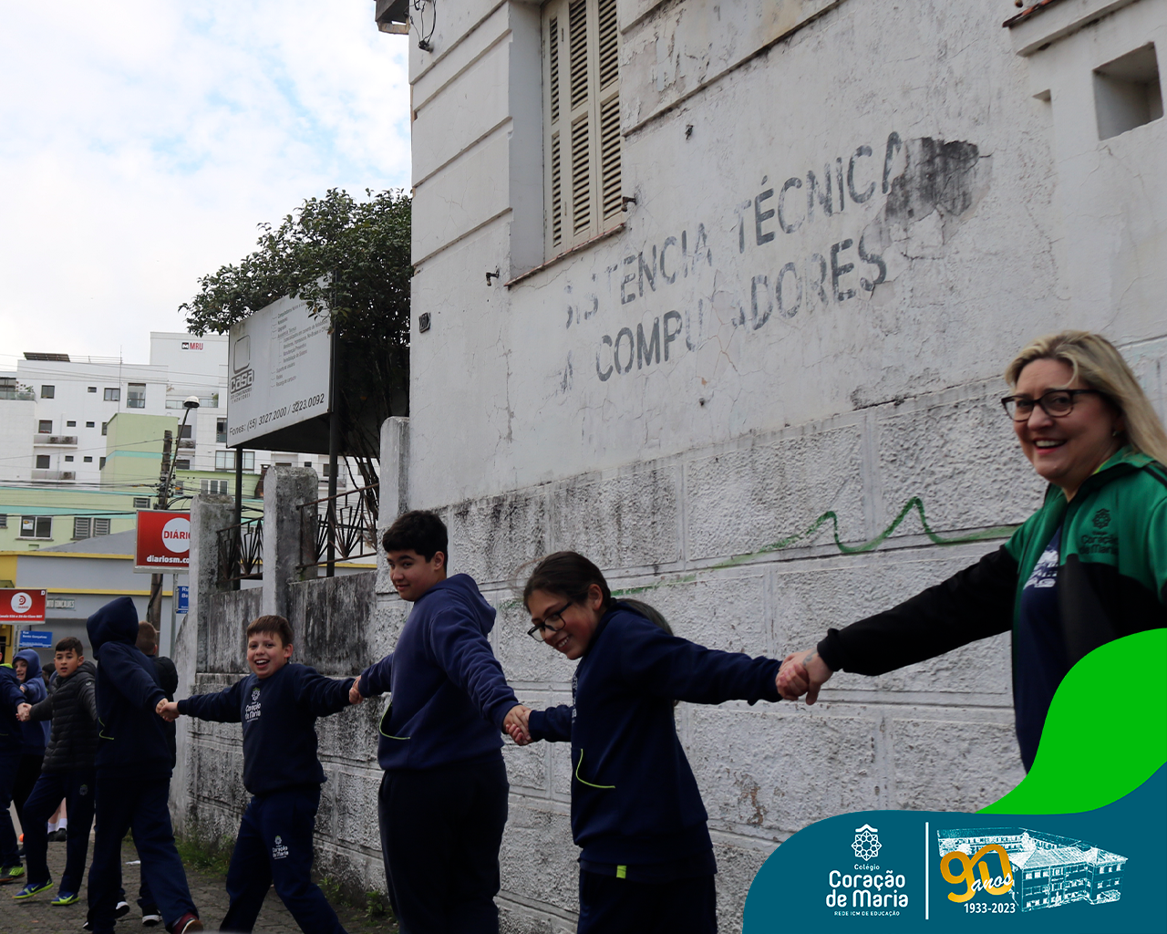 Como expressão de nossa gratidão pelo serviço prestado à sociedade, alunos e colaboradores de ambos os turnos, deram um abraço simbólico ao Colégio. Ao fazer este gesto de carinho, Ir. Maria Zeni, Diretora, convidou para que cada um e cada uma trouxesse presente em seu coração as milhares de pessoas que estudaram e trabalharam no CCM e que, no seu tempo, construíram história: manos, pais, tios, avós, bisavós, padrinhos, amigos da família e colaboradores.