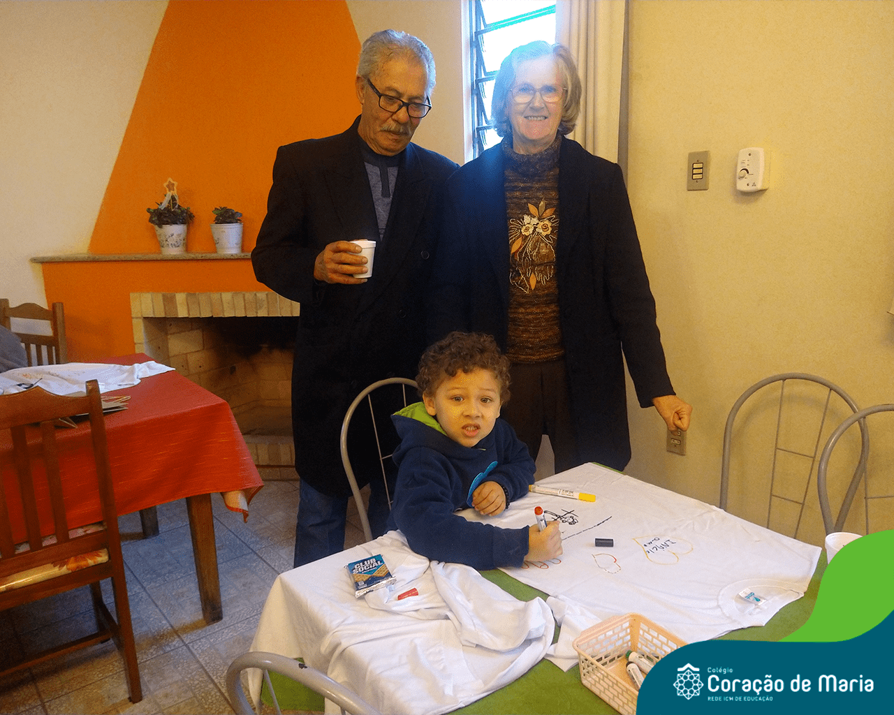 A turma realizou uma singela homenagem para demonstrar a importância dos avós para o desenvolvimento das crianças, eles que ajudam seus netos e netas na compreensão da estrutura familiar. Os avós ajudam os netos a entender e interpretar a história da família. São eles que contam quem foram os avós dos avós, o que faziam, de onde vieram, assim por diante. Por isso a importância desse dia tão especial.