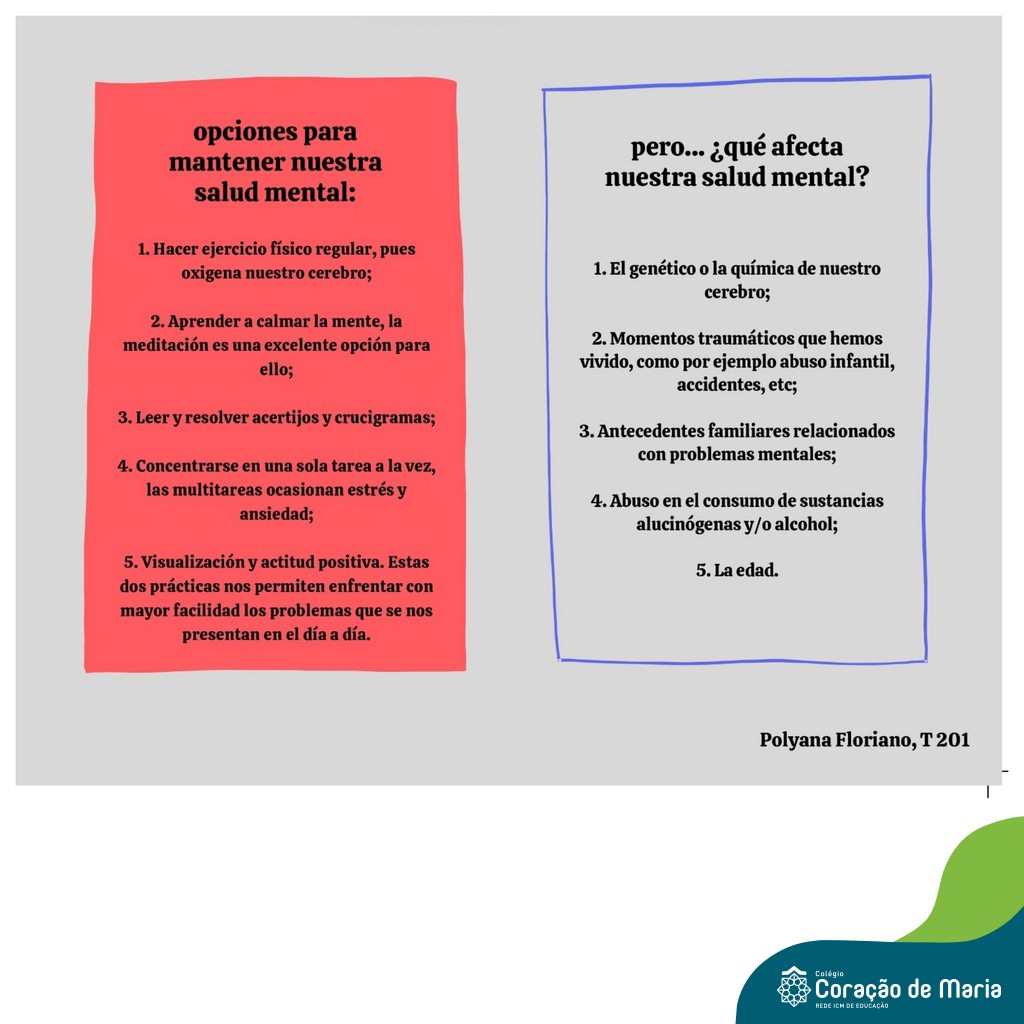 Cuidar da sua saúde é cuidar da saúde do outro. Na Língua Espanhola, os estudantes da Turma 201 (2ª série do Ensino Médio) foram desafiados a  desenvolverem folders  orientando as pessoas para uma boa saúde física e mental na pandemia.