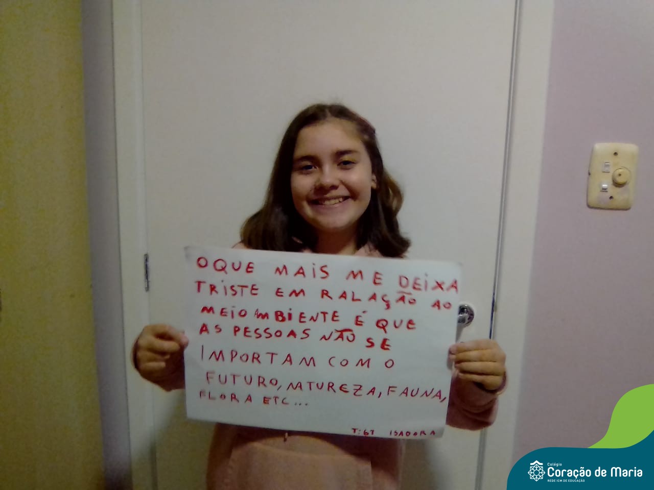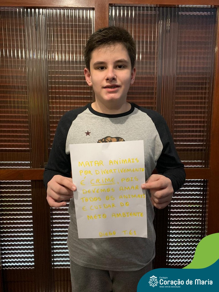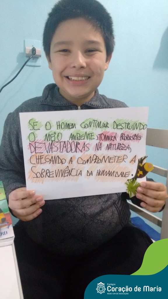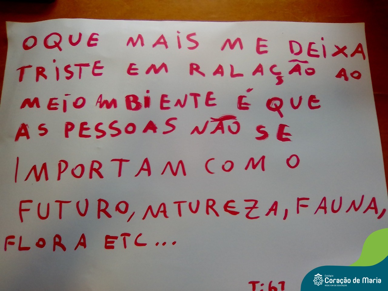 No dia 5 de junho se comemora o Dia Mundial do Meio Ambiente. Os alunos dos 6ºs anos foram convidados a escolherem uma frase que ajudassem a conscientizar as pessoas da importância da preservação dos seres Vivos e do meio ambiente como um todo. Foram muitas participações e todas foram importantes. Aqui estão só algumas delas!
