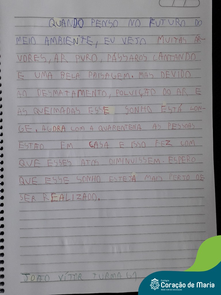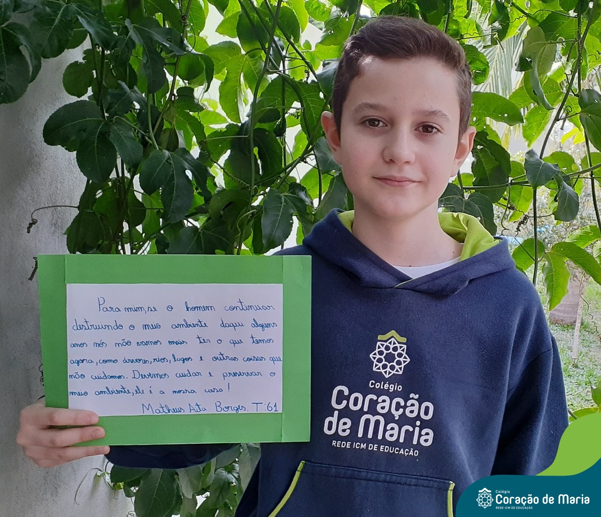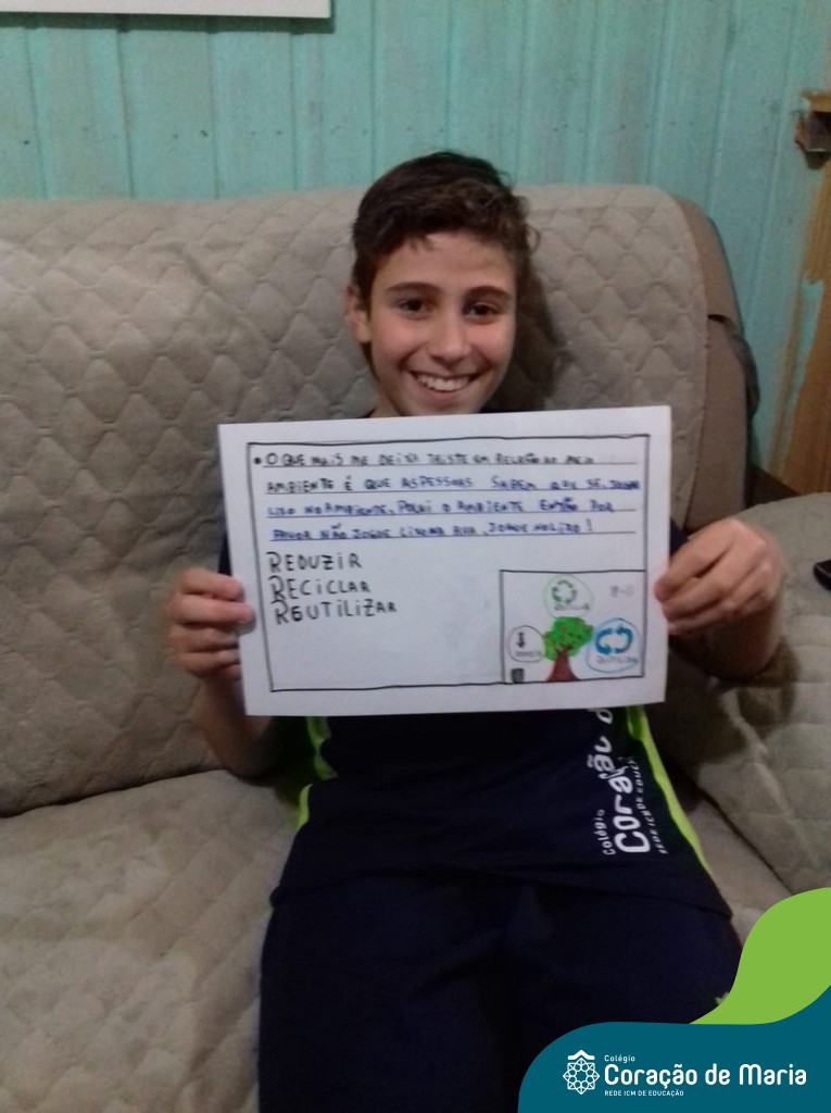 No dia 5 de junho se comemora o Dia Mundial do Meio Ambiente. Os alunos dos 6ºs anos foram convidados a escolherem uma frase que ajudassem a conscientizar as pessoas da importância da preservação dos seres Vivos e do meio ambiente como um todo. Foram muitas participações e todas foram importantes. Aqui estão só algumas delas!