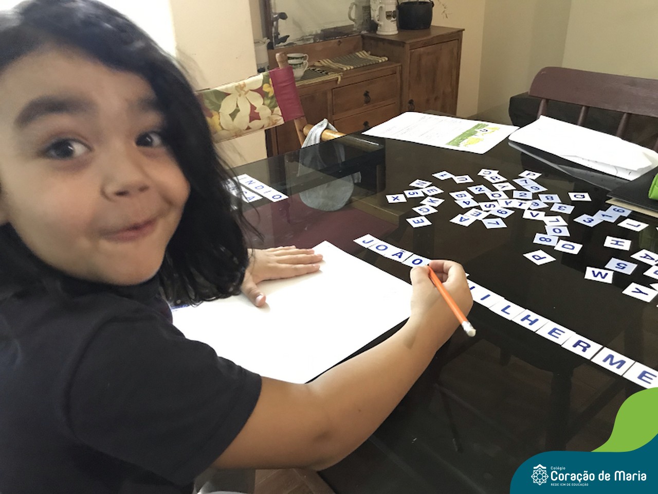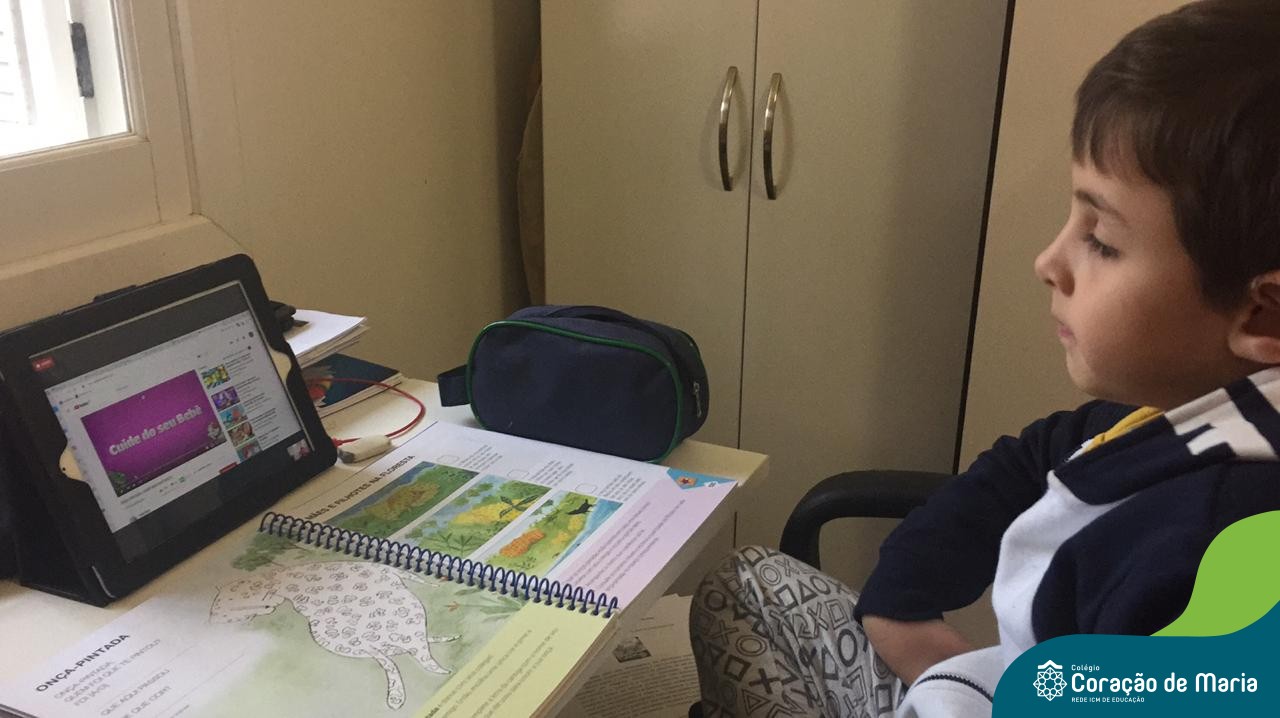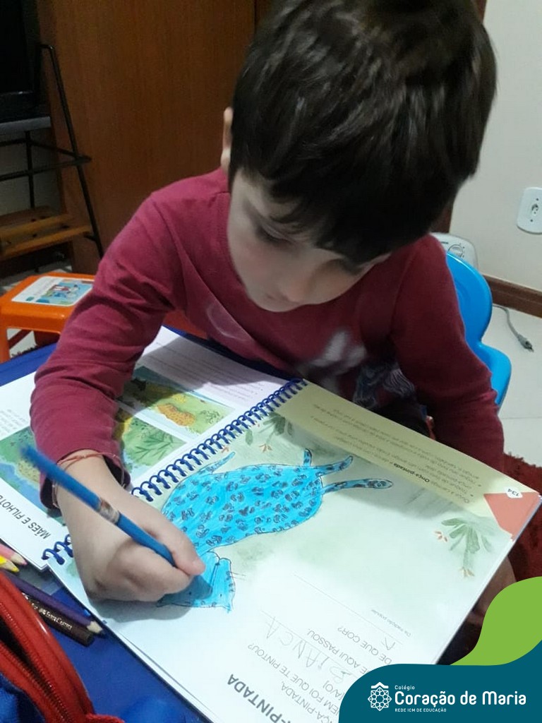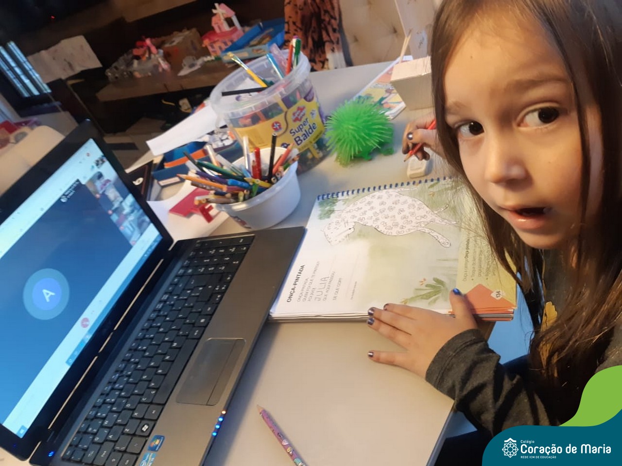 Entre brincadeiras, horas do conto, rodas de conversa online, culinária, cantigas, atividades no livro e tantas outras coisas, a aprendizagem acontece através das atividades domiciliares. Na Educação Infantil, os encontros online visam fortalecer as relações e alicerçar a aprendizagem na parceria entre escola-família.