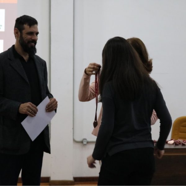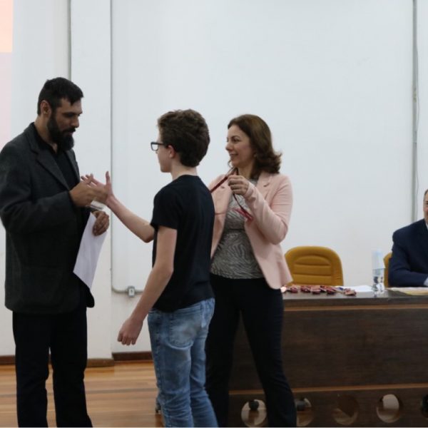 Na tarde de hoje, 28 de junho de 2019, representantes do CCM, juntamente com os pais dos alunos, presenciaram a entrega da medalha de bronze para os alunos, em uma solenidade na UFSM.