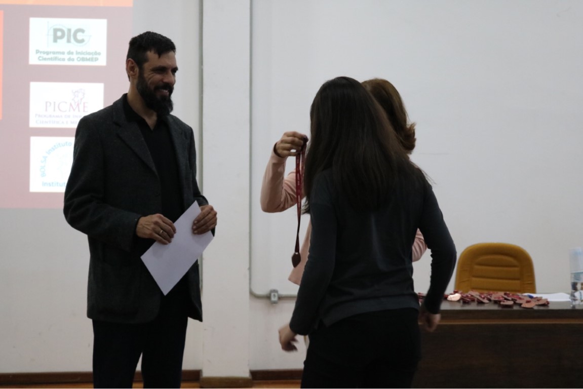 Com o desempenho expressivo, os alunos Giovana e José Eduardo participam do Programa de Iniciação Científica (PIC). O PIC é um programa que coloca os alunos em contato com os aspectos da Matemática que não são vistos em sala de aula, ampliando o conhecimento científico e preparando para um futuro desempenho profissional e acadêmico. No programa há encontros presenciais, realizados na Universidade Federal de Santa Maria, e estudos online.