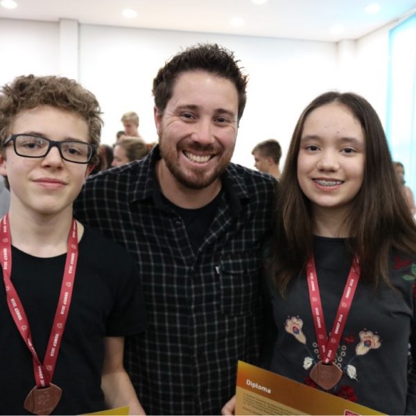 Com orgulho e alegria parabenizamos os alunos medalhistas da Olimpíada Brasileira de Matemática das Escolas Públicas e Particulares (OBMEP), edição 2018: Giovana Borelli (nível 1) e José Eduardo Vargas Rigo (nível 2). Essa é realmente uma conquista importante dentro de uma competição nacional que contou, na sua primeira fase, com aproximadamente 18 milhões de candidatos.